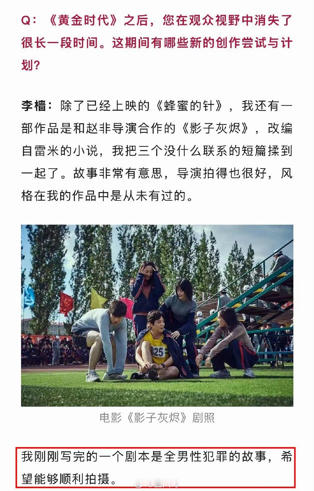编剧李樯将拍全男性犯罪电影感觉又有新电影可以期待了啊,编剧李樯透露将拍全男性犯罪电影,就是说这个阵容听起来就氛围感拉满,从《致我们终将逝去的青春》到《立春》等,战绩可查,谁能出演也是要好起来了吧!李樯全男性犯罪故事即将开拍