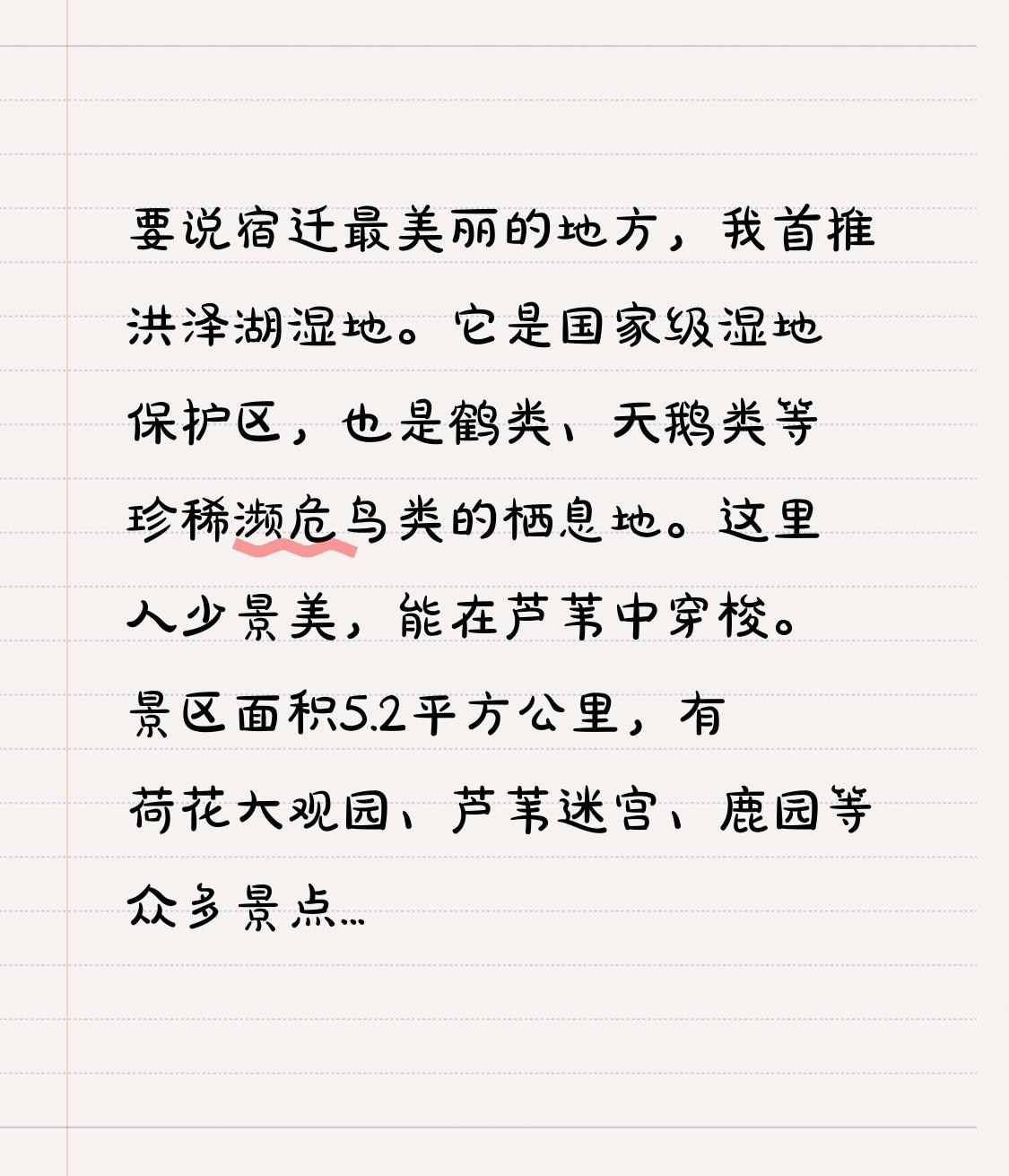 要说宿迁最美丽的地方,我首推洪泽湖湿地。它是国家级湿地保护区,也是鹤类、天鹅类等珍稀濒危鸟类的栖息地。这里人少景美,能在芦苇中穿梭。