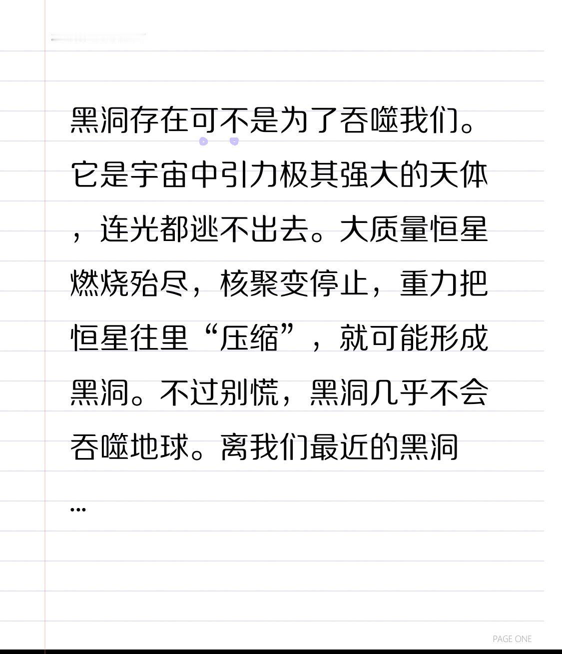 黑洞存在可不是为了吞噬我们。它是宇宙中引力极其强大的天体,连光都逃不出去。大质量