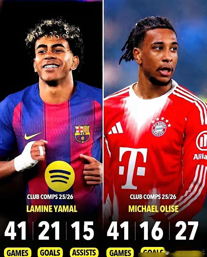 足球圈的身价,真让人捉摸不透!拜仁的奥利塞,24岁,数据亮眼,单赛季造37球,助攻凯恩不在话下,身价飙至1.4亿欧元,世界前六,妥妥的大腿。但巴萨的亚马尔,才18岁,数据虽没那么抢眼,身价却高达2亿,与哈兰德、姆巴佩同档,俱乐部还给了10号球衣,长合同锁到2031年。这就是现实,奥利塞即战力虽强,却比不过亚马尔年轻6岁。在资本看来,18岁的潜力,远超24岁的巅峰。这估值逻辑,你懂了吗?足球奥利塞亚马尔