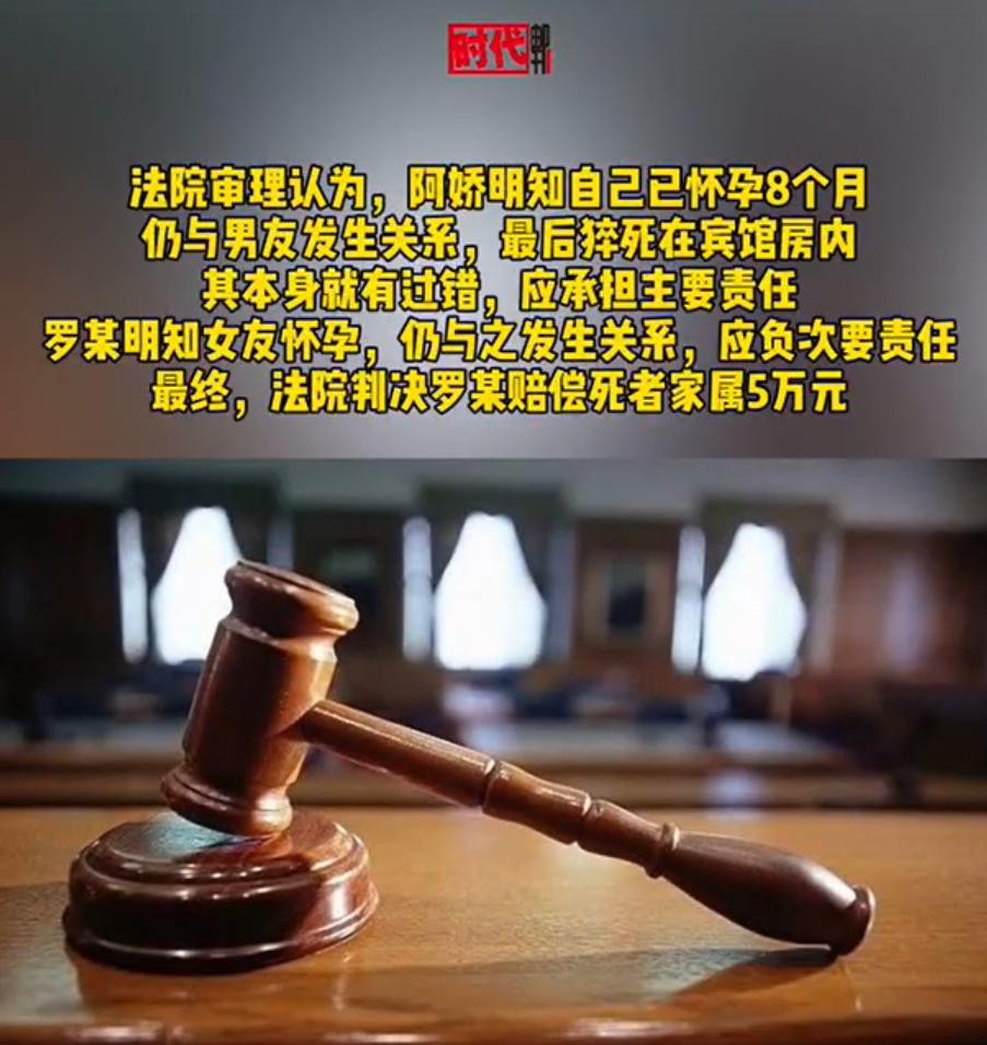 62岁这位也不无辜,明知道对方怀着孕,依然照样约、照样开房、照样亲密,劝阻没劝住,刹车也没刹住,注意义务没尽到,判了次要责任。