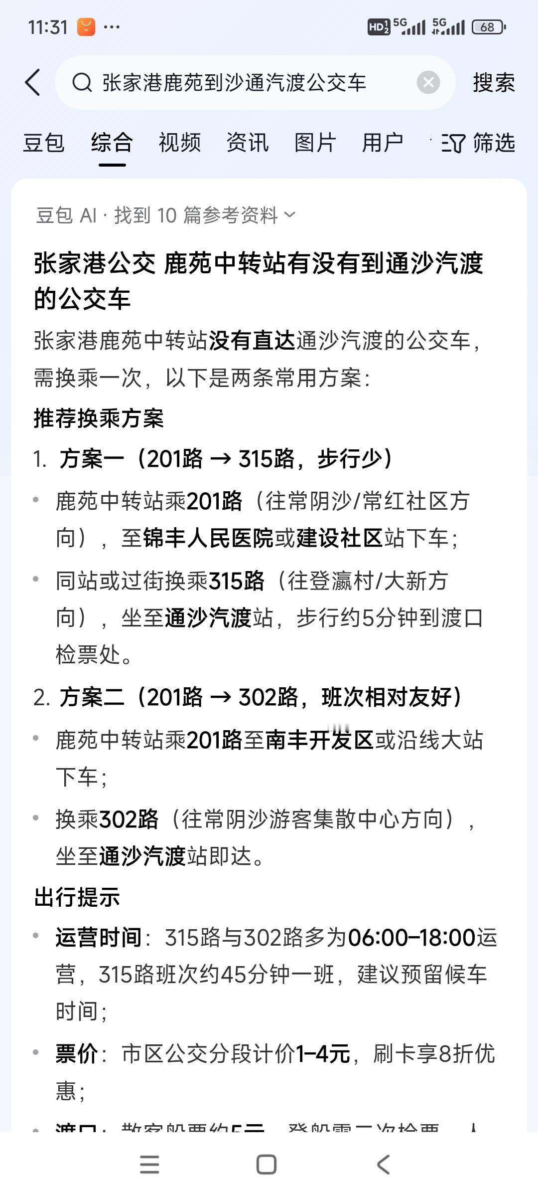 现在南通到张家港高铁站每天只有6趟公交车了,6元钱。刷南通公交车卡,打7折就是4元2角钱。