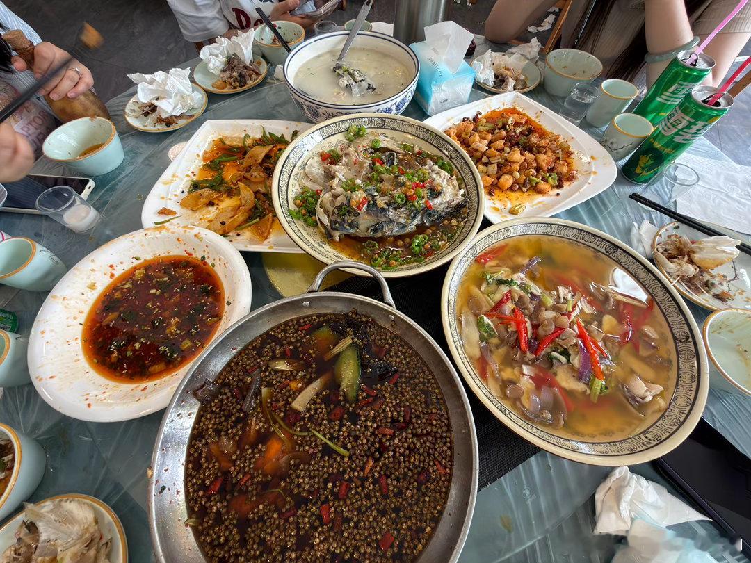今天去乡里吃鱼,一条鱼能够做出这么多种菜,而且都很好吃,图7是吃完后的状态米帅的