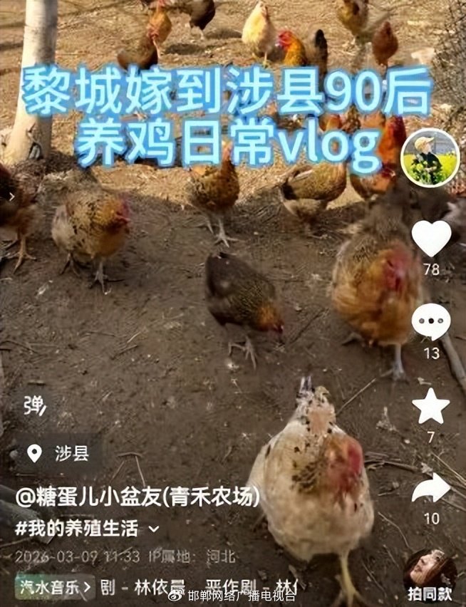 2018年,吴思凝从黎城嫁到涉县,成为地道的涉县媳妇。怀揣生态农业梦想,她于2025年夏天承包70亩土地创办青禾农场,探索林果种植与林下养殖融合发展的生态种养模式。农场内有60多亩核桃林,她充分利用林下空间,散养华北柴鸡、麻羽鸡共100多只,打造原生态养殖业态。为拓宽销路,吴思凝经常拍摄农场日常短视频,真实的田间场景和生态养殖方式吸引了众多抖音粉丝,柴鸡蛋销量稳步上升。除了成年柴鸡,她还在家中精心孵化五黑鸡苗及幼鹅百余只,为扩大养殖规模储备种苗。