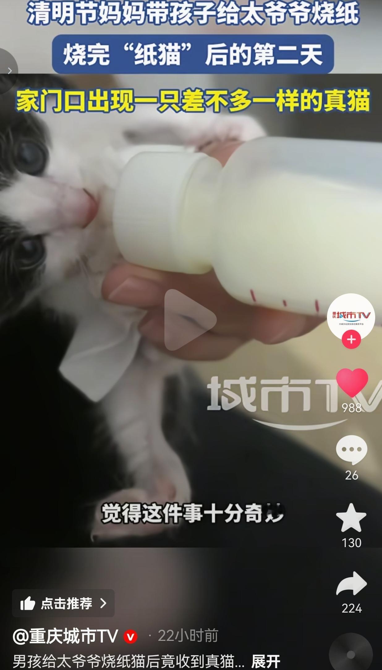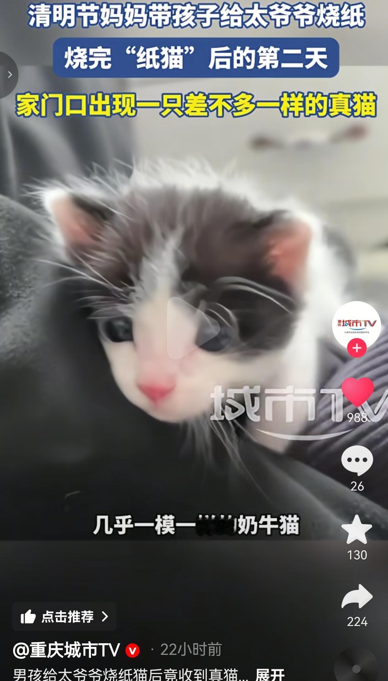 破防到泪崩!安徽界首一个13岁男孩,清明给太爷爷烧了只纸猫,结果第二天家门口,居