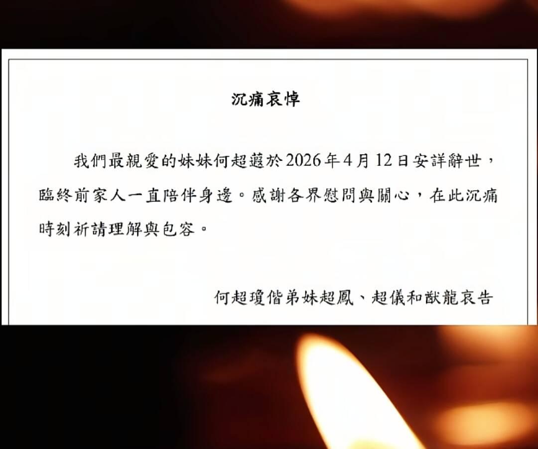 4月12日,一则令人惋惜的消息传来:赌王何鸿燊与二太蓝琼缨的女儿何超蕸安详离世,享年60岁。这位低调却实力不凡的豪门千金,就这样悄然告别了世界。
