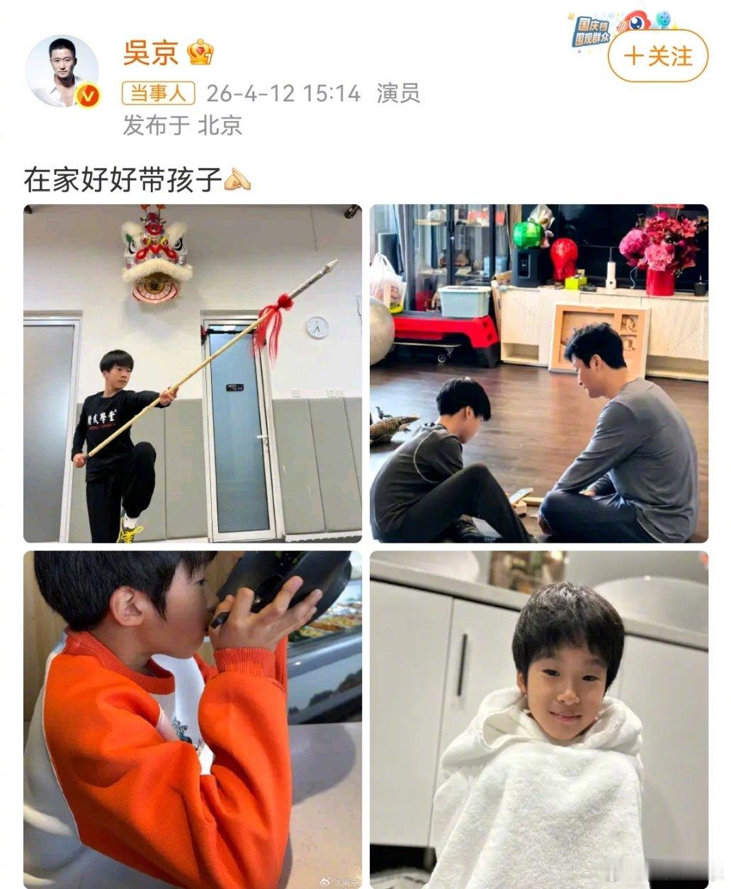 吴京真在家带娃了