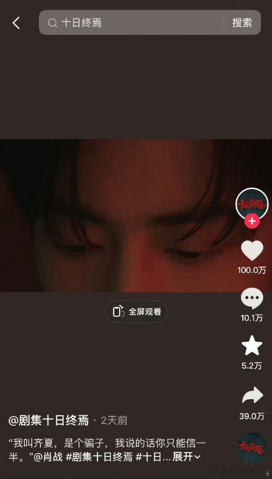 肖战十日终焉第一个百万赞已达成,这个成绩是不是超好?