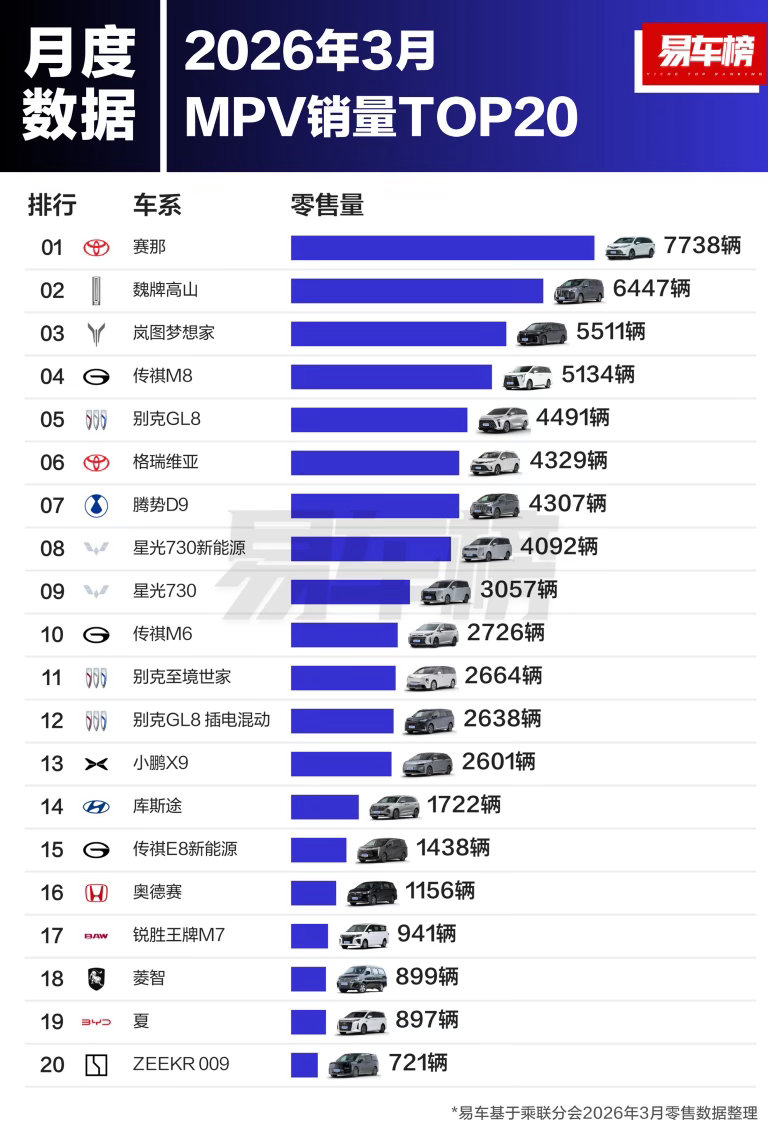 20026年3月销量超级大盘点,轿车、SUV、MPV全覆盖。