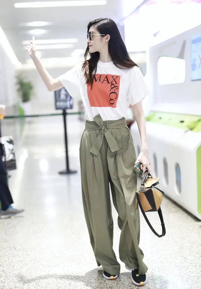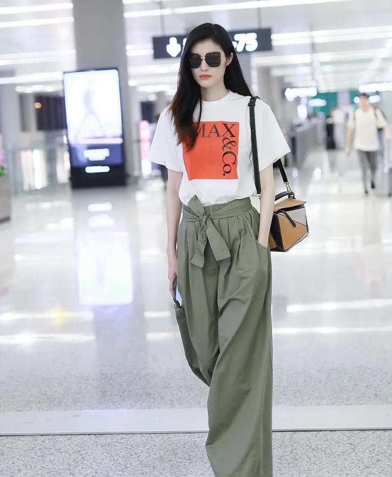 何穗机场私服太会了!✨ 超模何穗的日常穿搭就是行走的穿搭教科书! 白色印花T