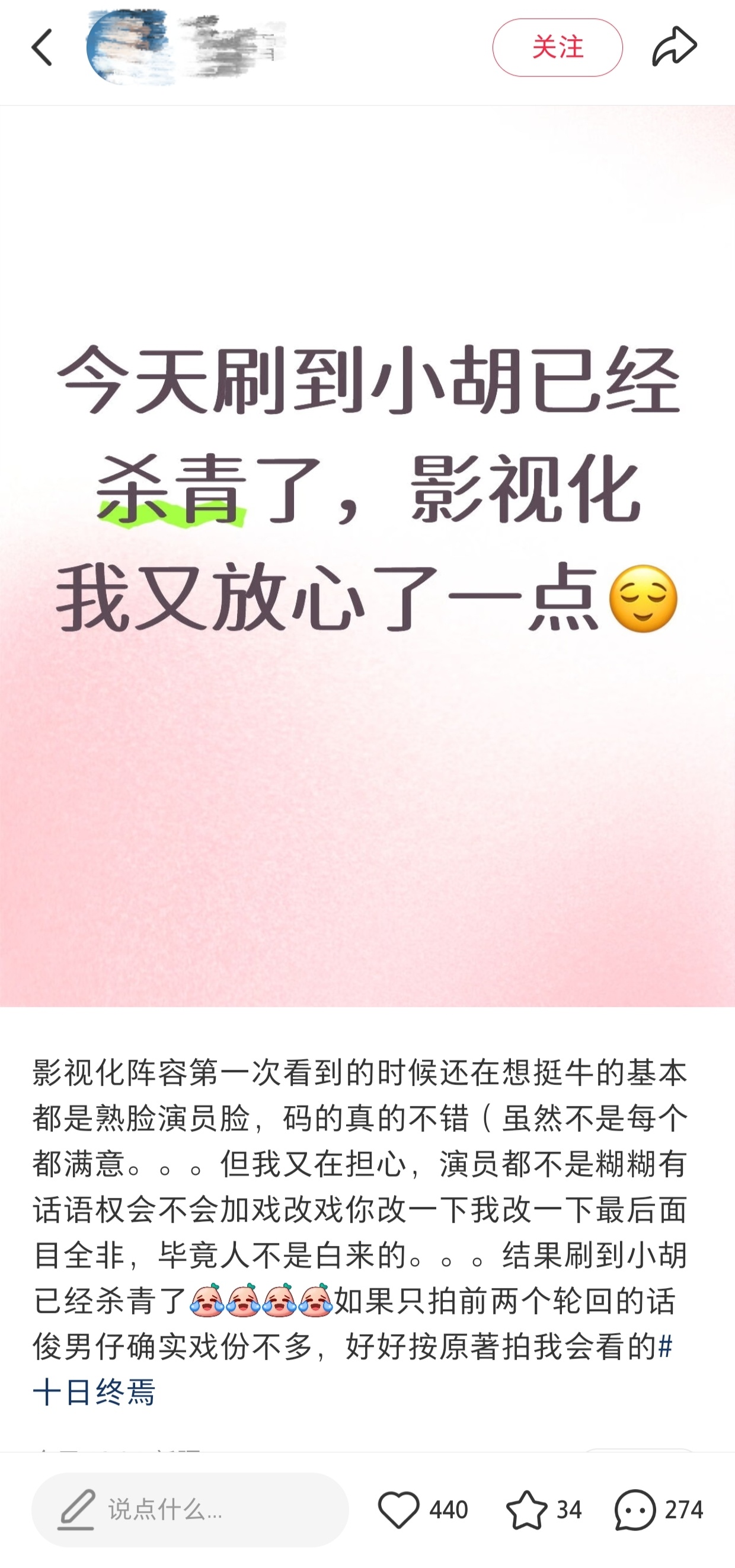 胡先煦十日终焉被曝1天杀青原著粉们很放心,这个角色前期戏份很少,剧很还原