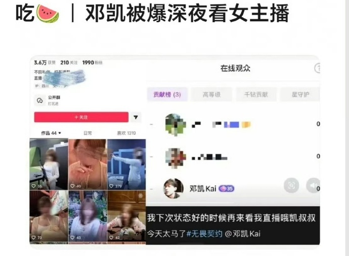 女主播直接全平台艾特喊话邓凯 曝邓凯深夜看女主播