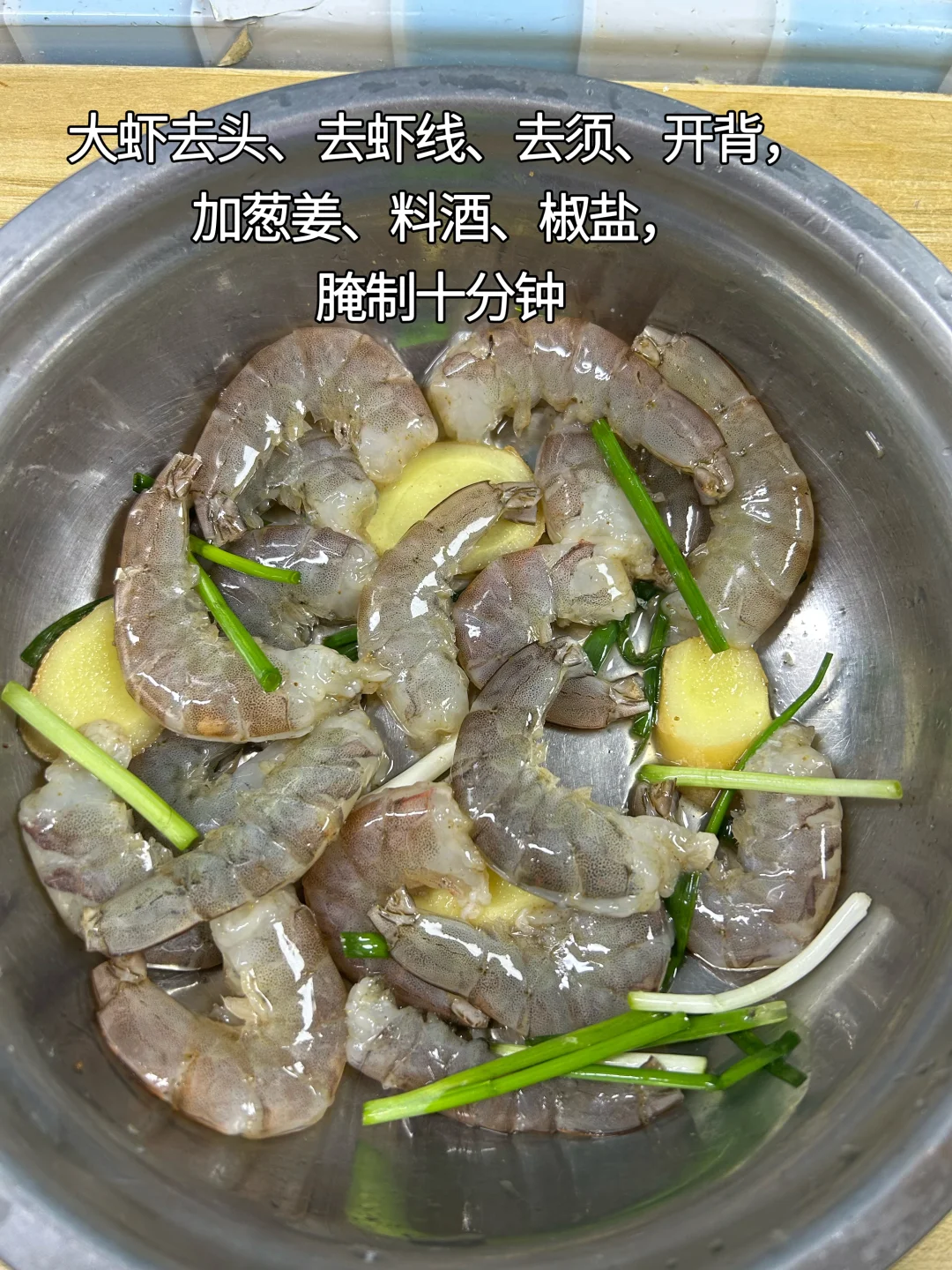 1.新鲜大虾去头去虾腿去虾线,开背更入味。