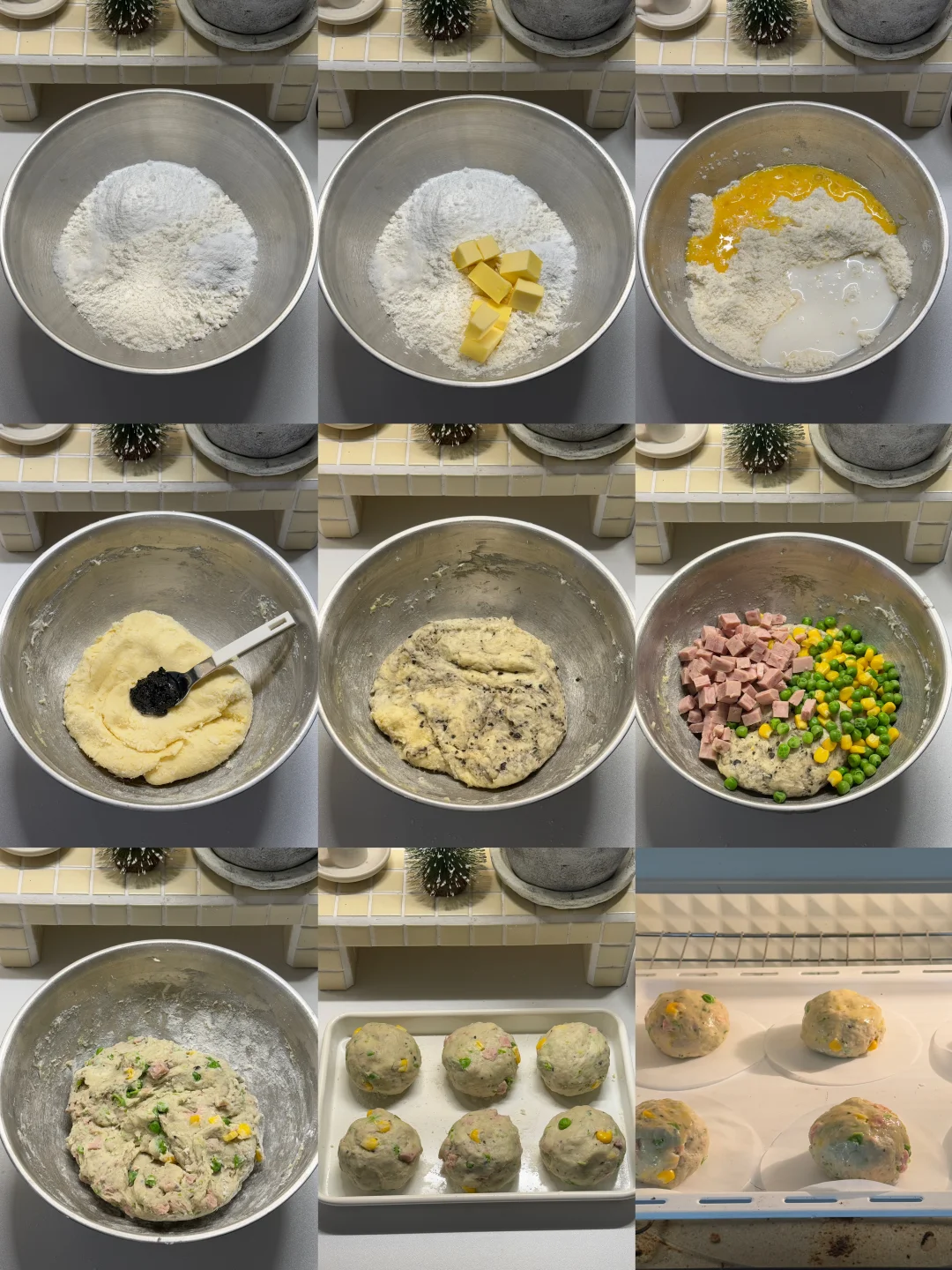▪️青豆和玉米粒焯水备用;午餐肉切丁