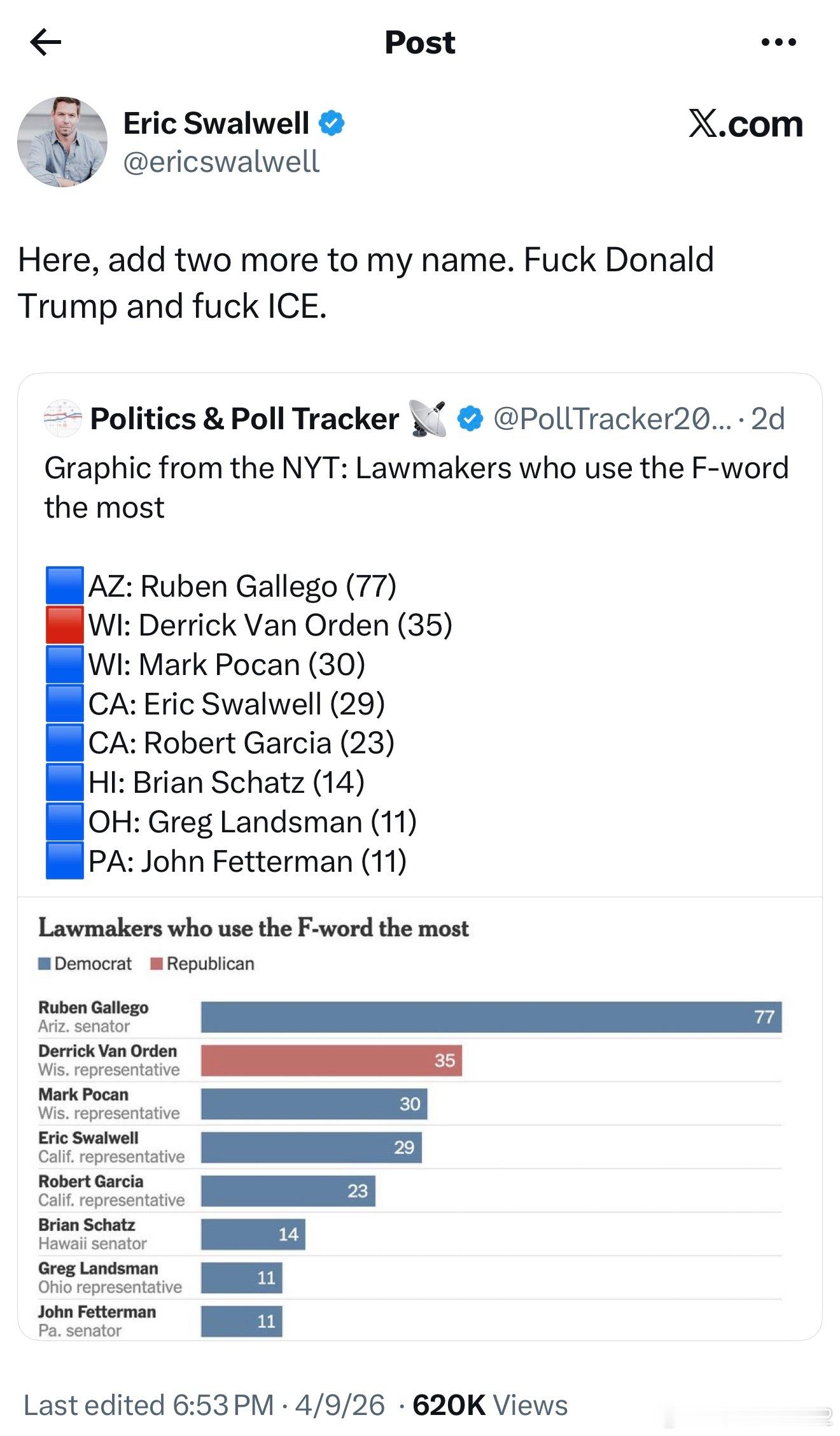 众议员吉米·戈麦斯(Jimmy Gomez,加州民主党籍):辞去竞选联合主席一职,并敦促斯瓦尔韦尔退出竞选。