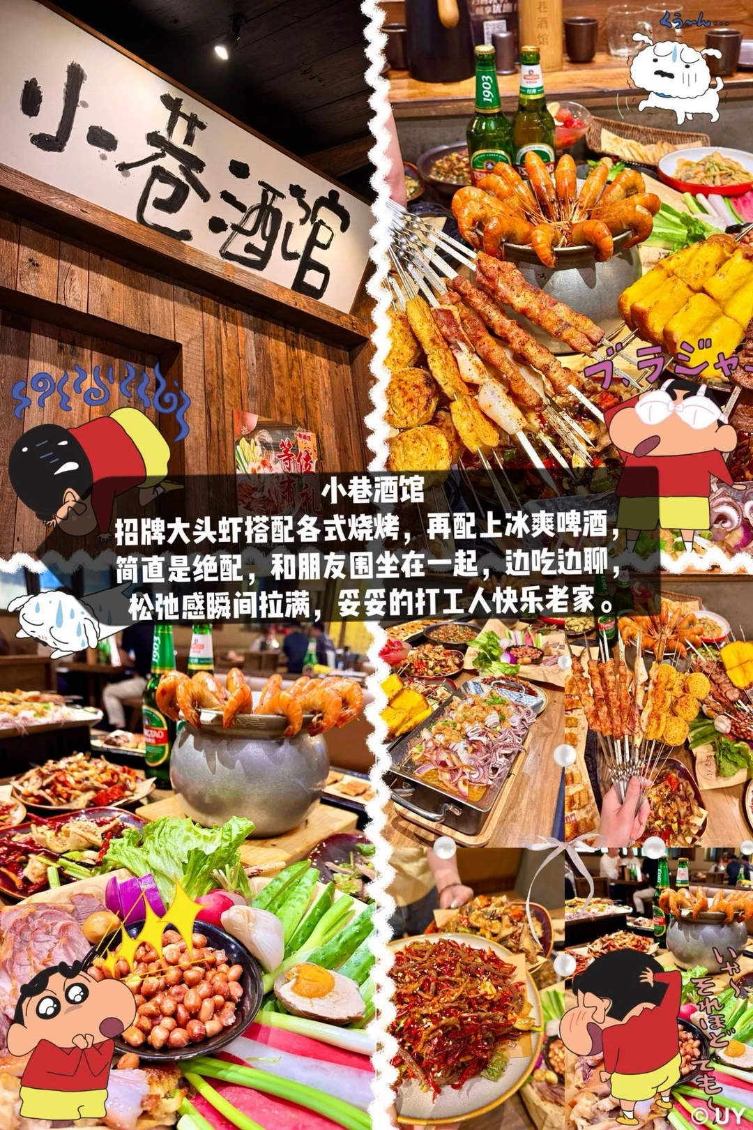 招牌大头虾搭配各式烧烤,再配上冰爽啤酒,简直是绝配,和朋友围坐在一起,边吃边聊,松弛感瞬间拉满,妥妥的打工人快乐老家。