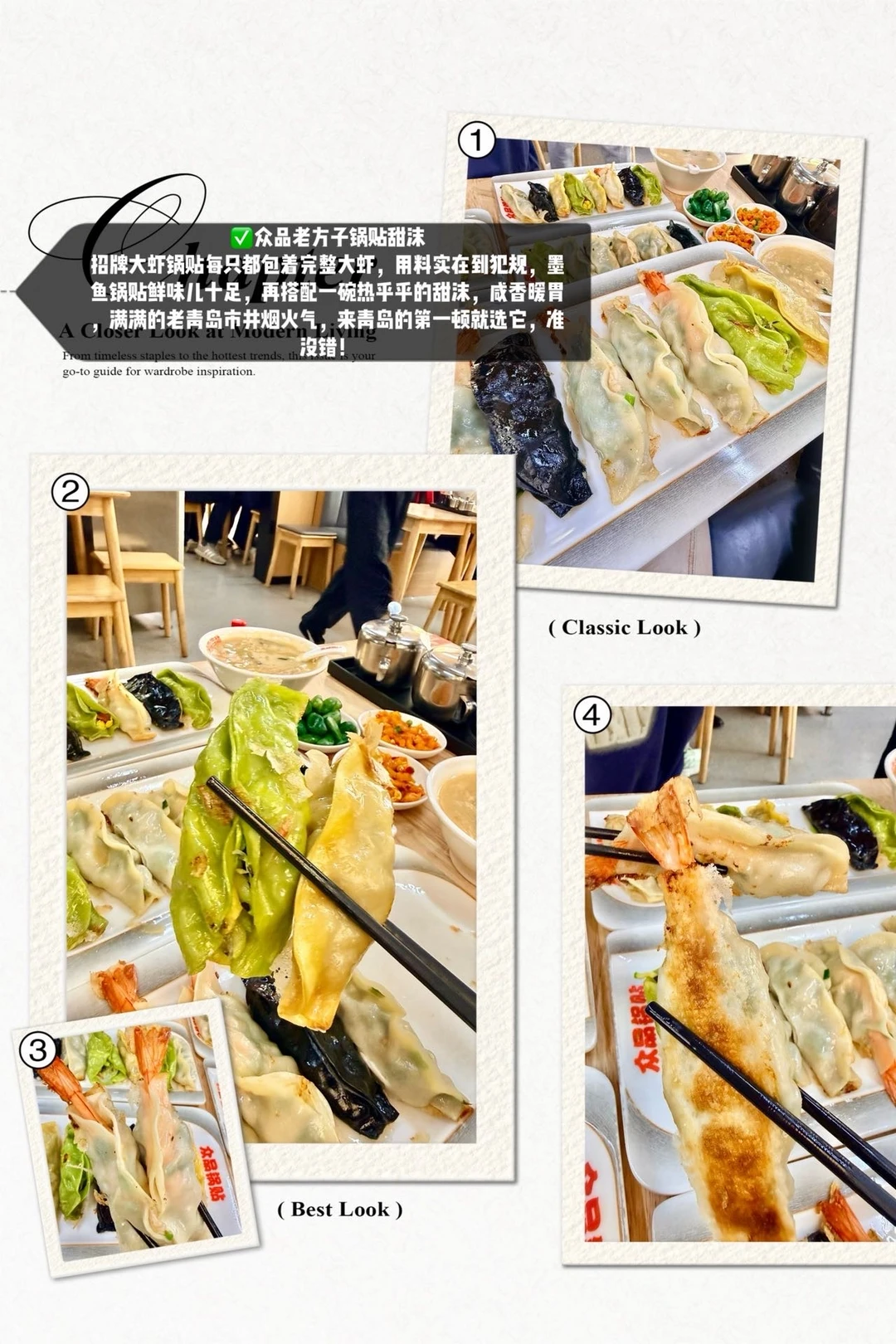 招牌大虾锅贴每只都包着完整大虾,用料实在到犯规,墨鱼锅贴鲜味儿十足,再搭配一碗热乎乎的甜沫,咸香暖胃,满满的老青岛市井烟火气,来青岛的第一顿就选它,准没错!