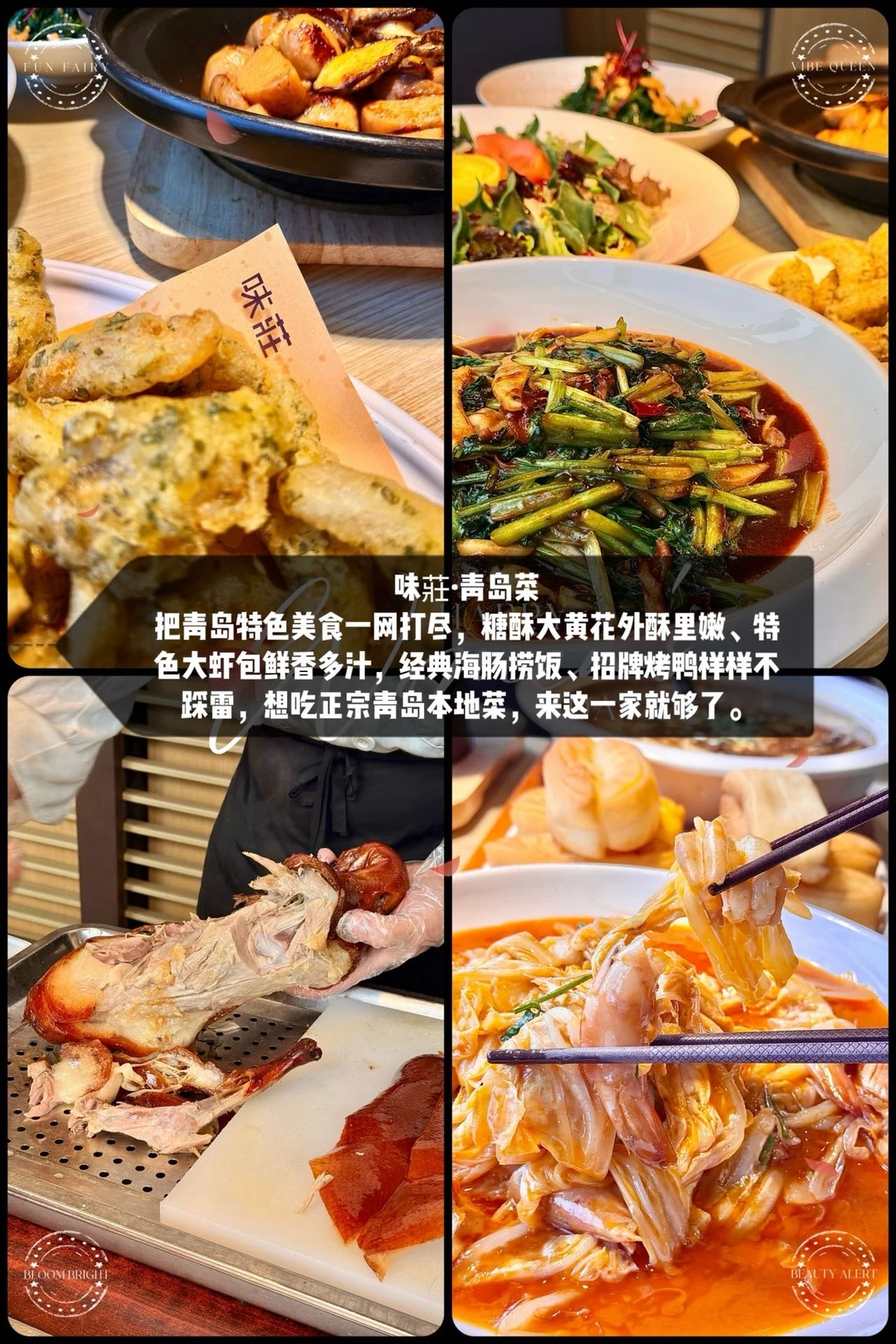 把青岛特色美食一网打尽,糖酥大黄花外酥里嫩、特色大虾包鲜香多汁,经典海肠捞饭、招牌烤鸭样样不踩雷,想吃正宗青岛本地菜,来这一家就够了。