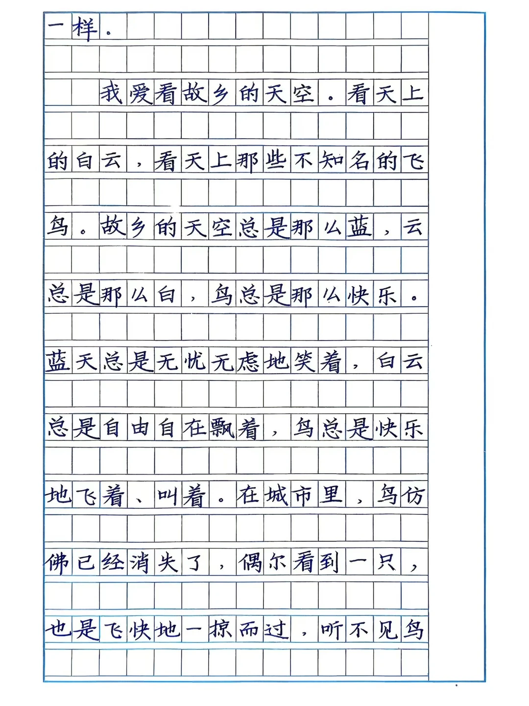 中考满分作文,局部书写。中高考作文的卷面书写很重要,写工整,横竖笔直,大小排列整齐。