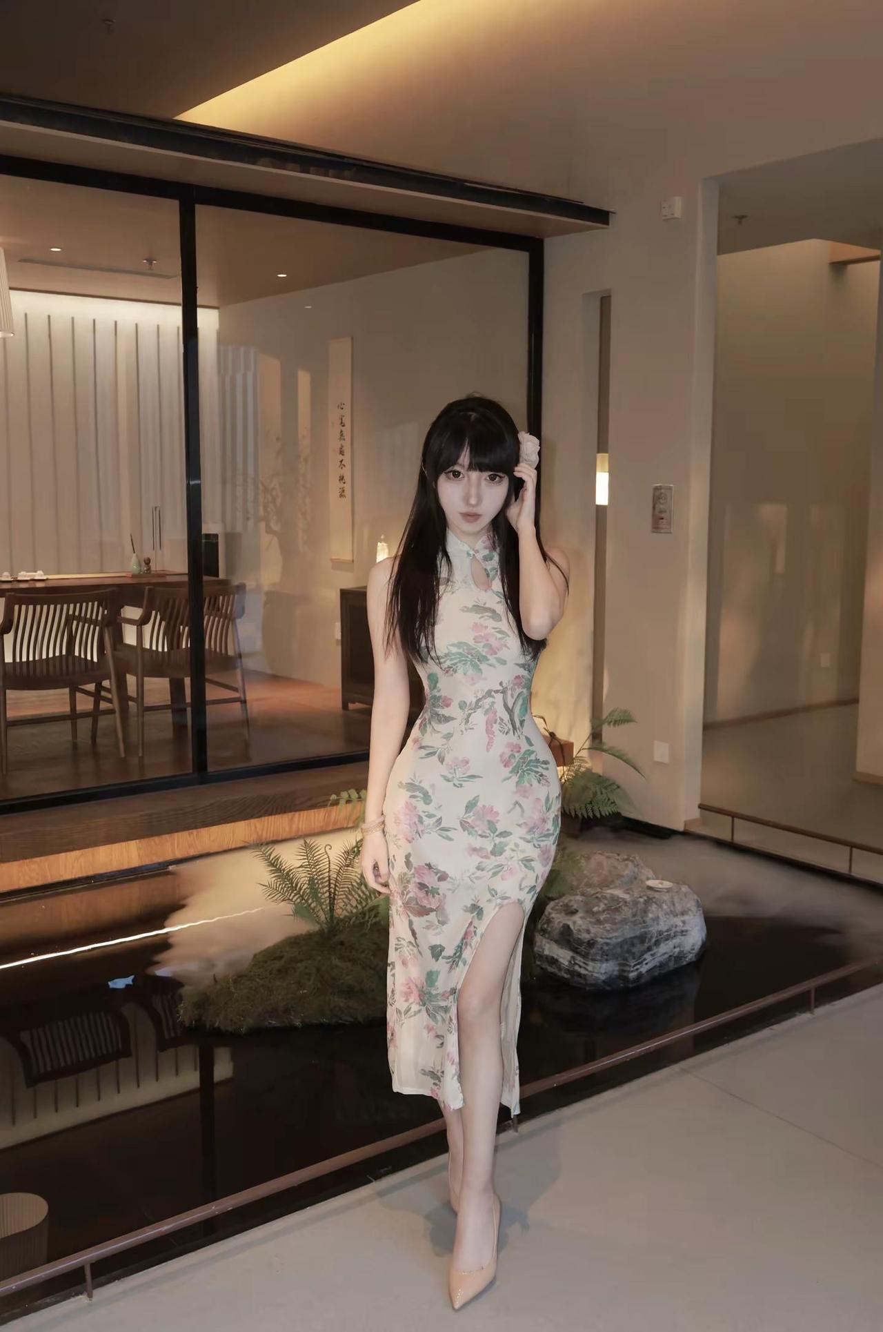 一袭旗袍,勾勒出东方的优雅与柔美。裙摆上的花卉图案,仿佛是春日里绽放的花朵,诉说