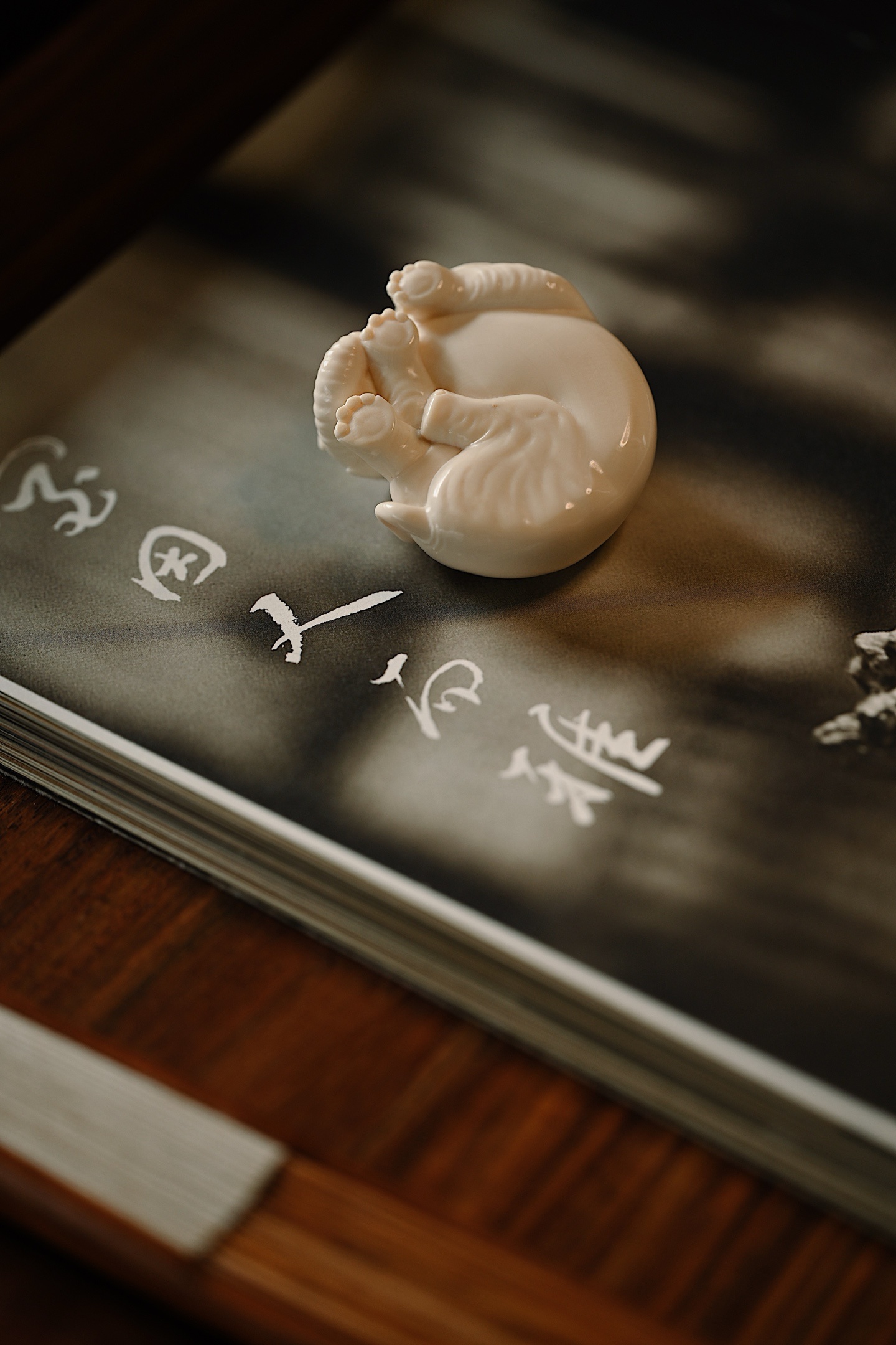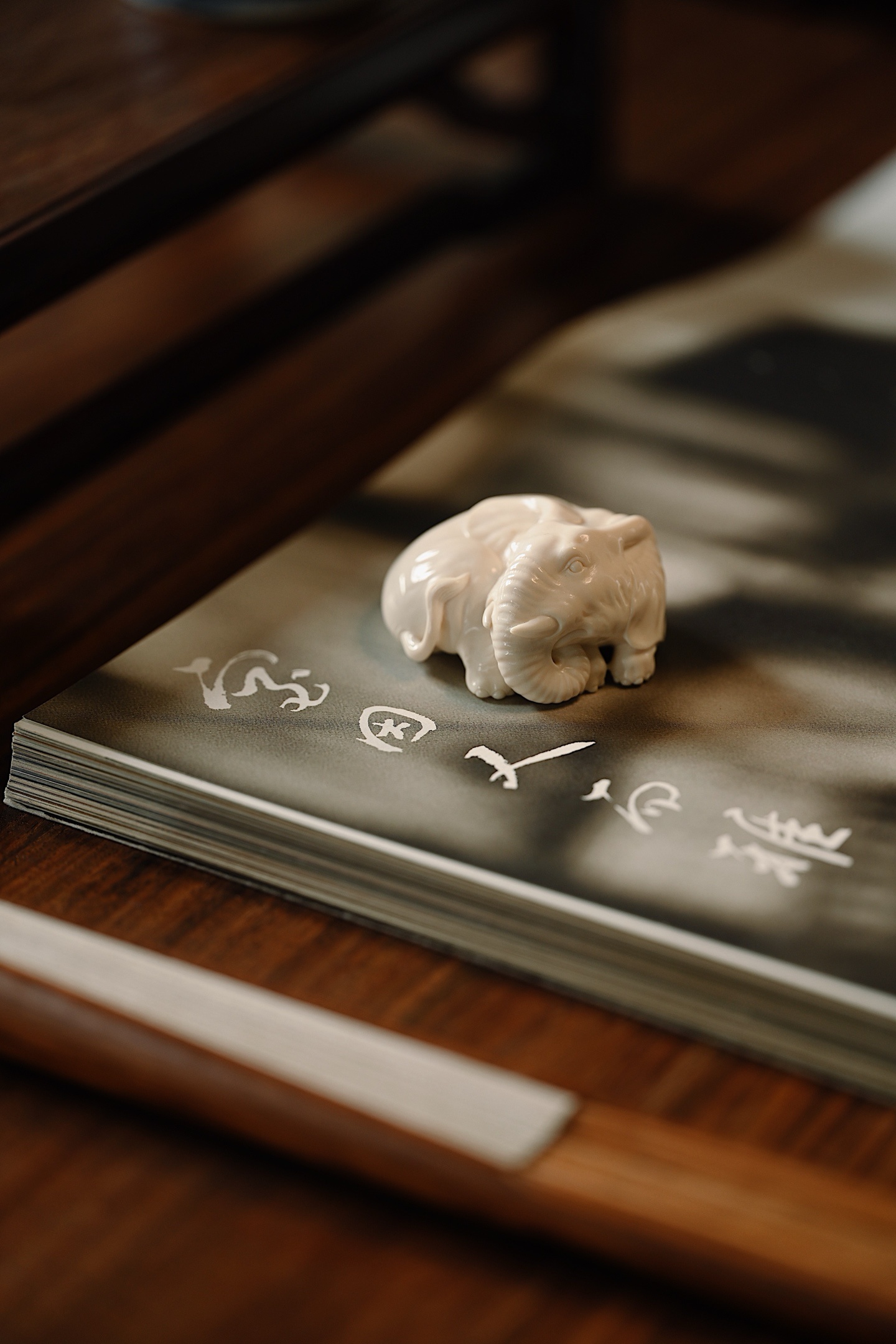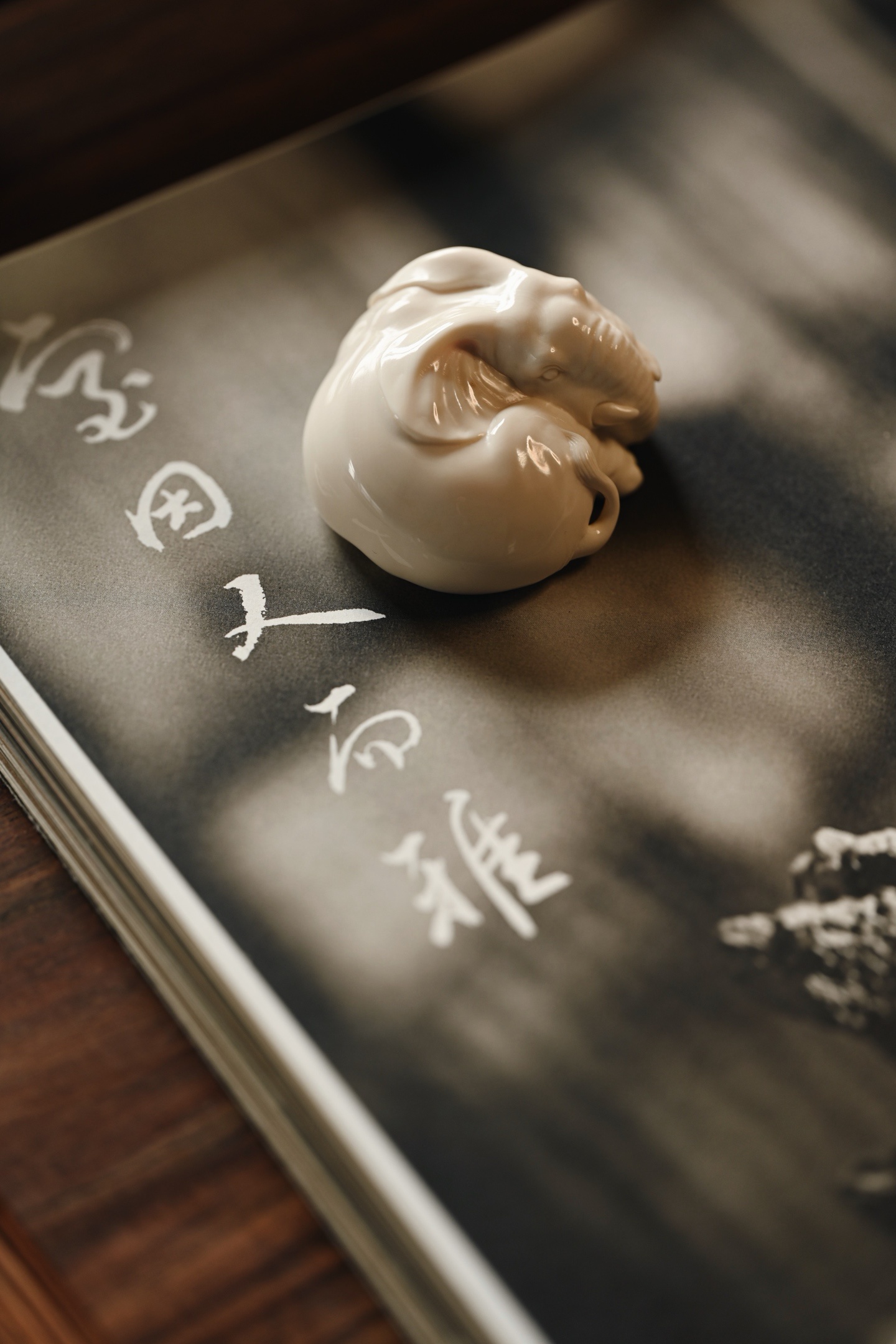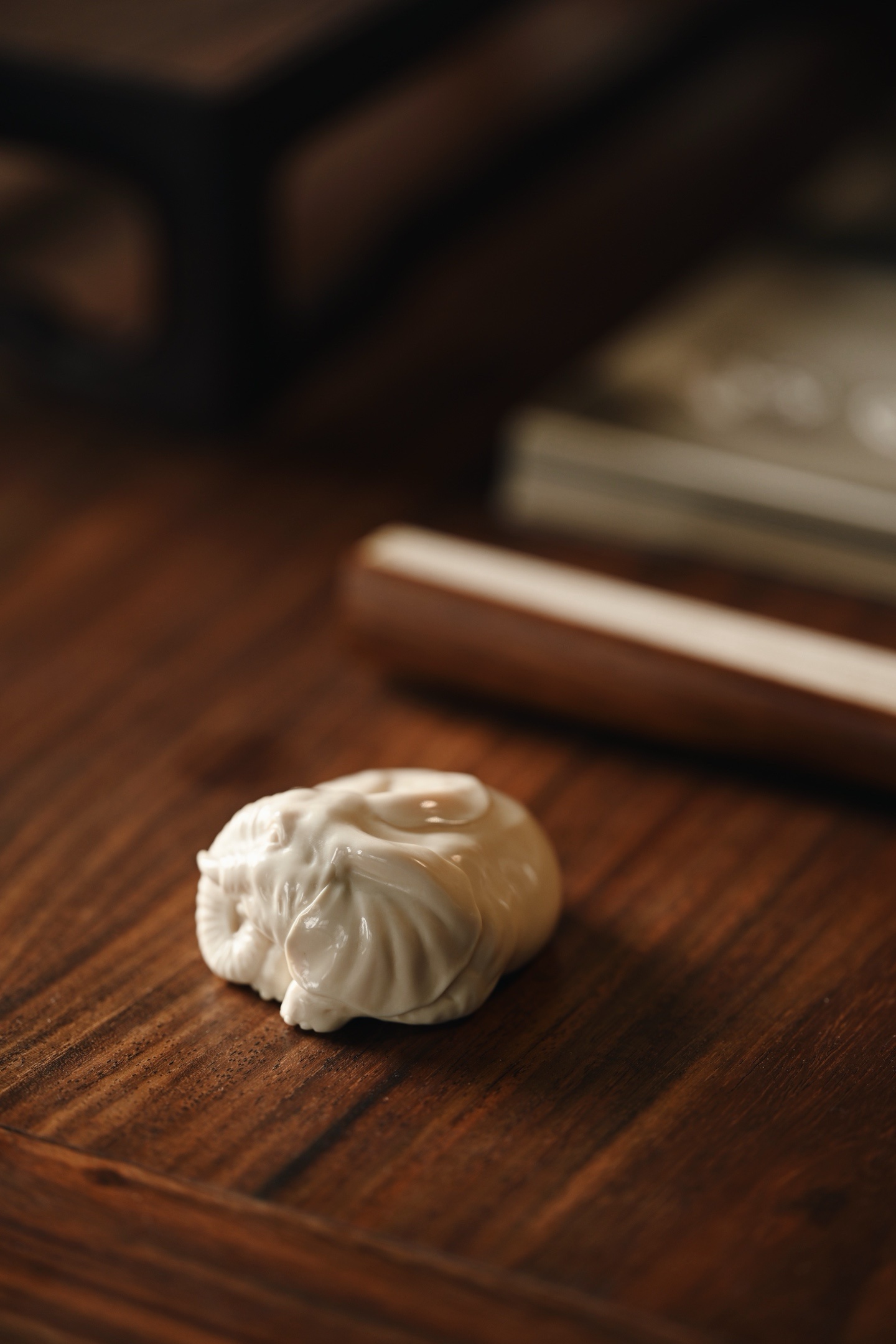 雕刻线条流畅圆润,肌理刻画入微,卧象象首饱满,长鼻卷曲,大耳舒展,四肢蜷伏,体态丰腴憨态,神态安详灵动,「象」谐音「祥」,象征吉祥如意。
