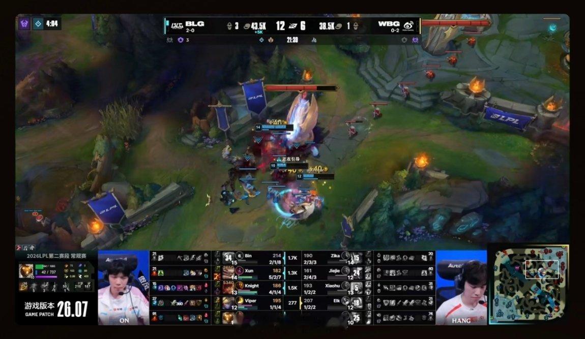 BLG对战WBG看了几分钟直播,WBG完全还不了手,bin大哥对老队友elk下手