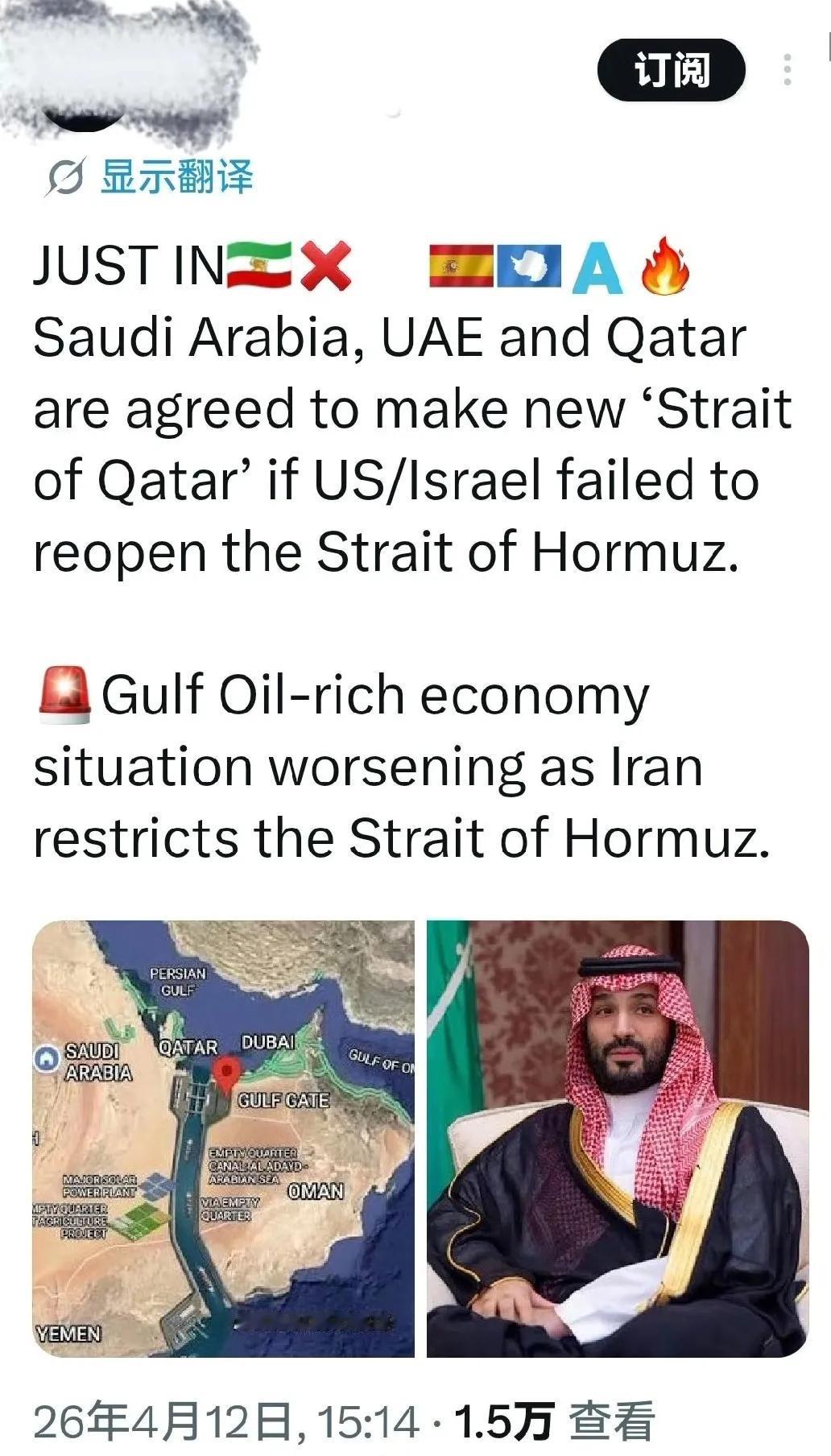 沙特、阿联酋、卡塔尔三国称,如果霍尔木兹海峡不能重开,三国将合建“卡塔尔海峡”!