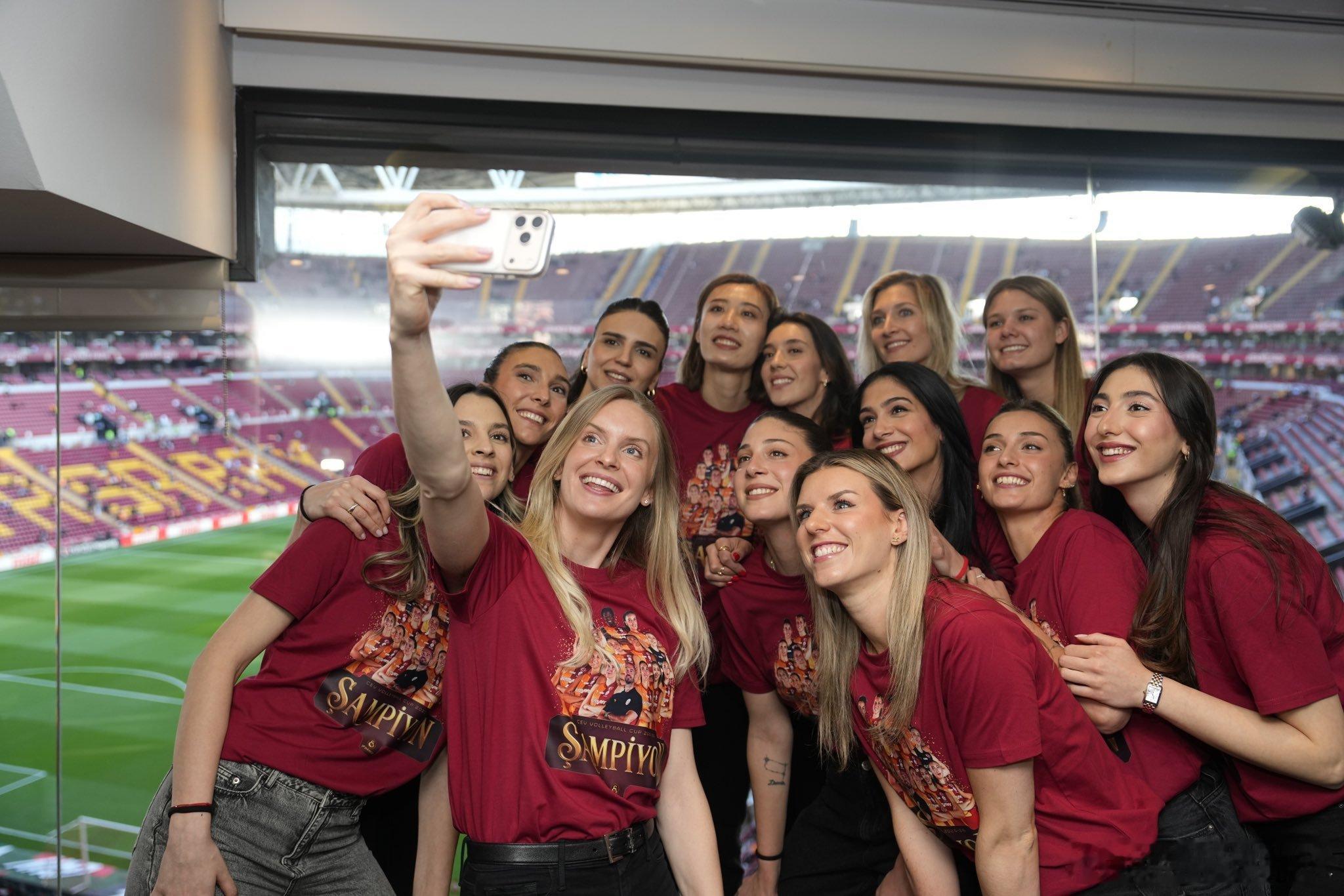 国际排坛动态 加拉塔萨雷女排来到他们足球俱乐部的主场拉姆斯公园(也叫土耳其电信竞技场)展示欧洲联盟杯奖杯~