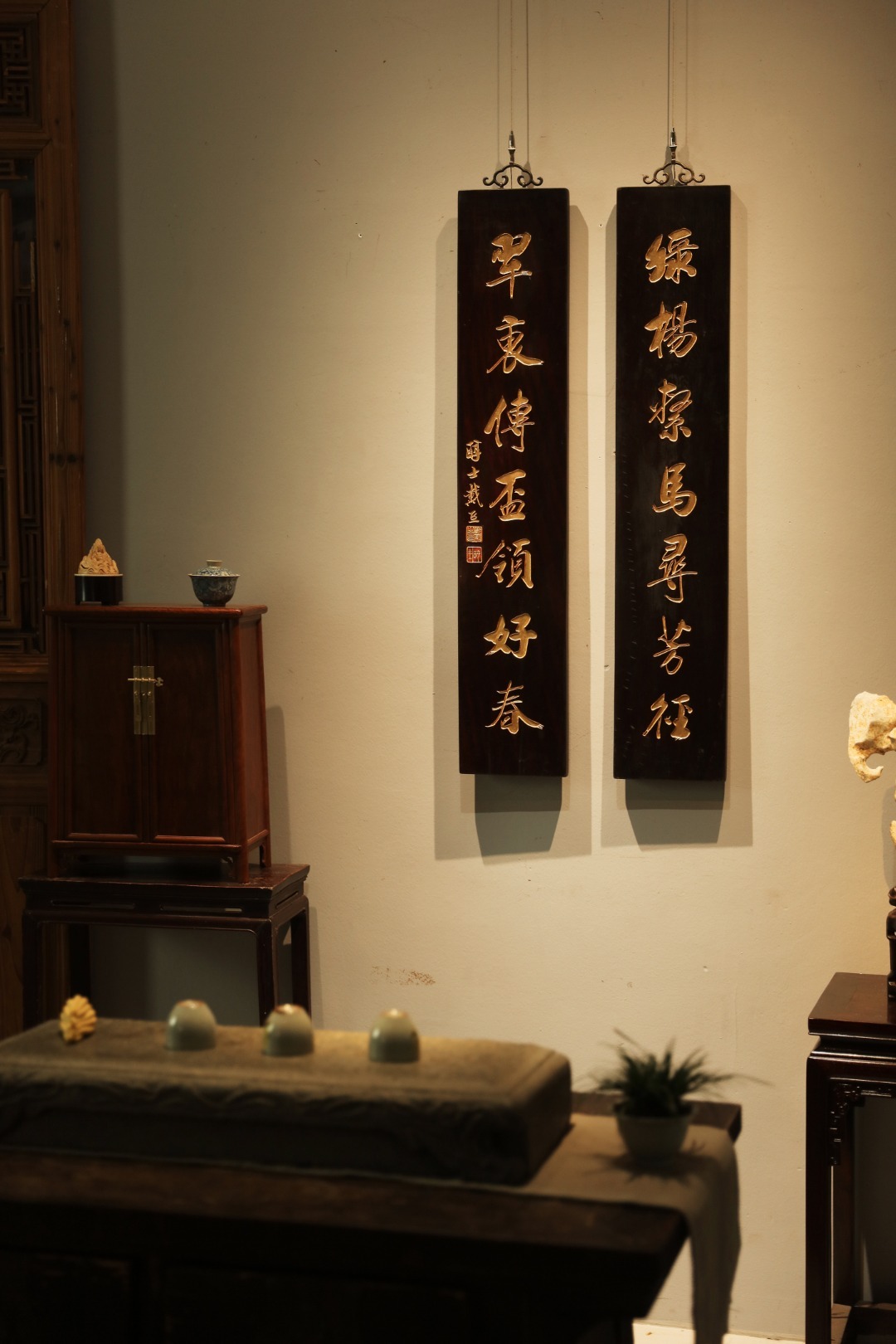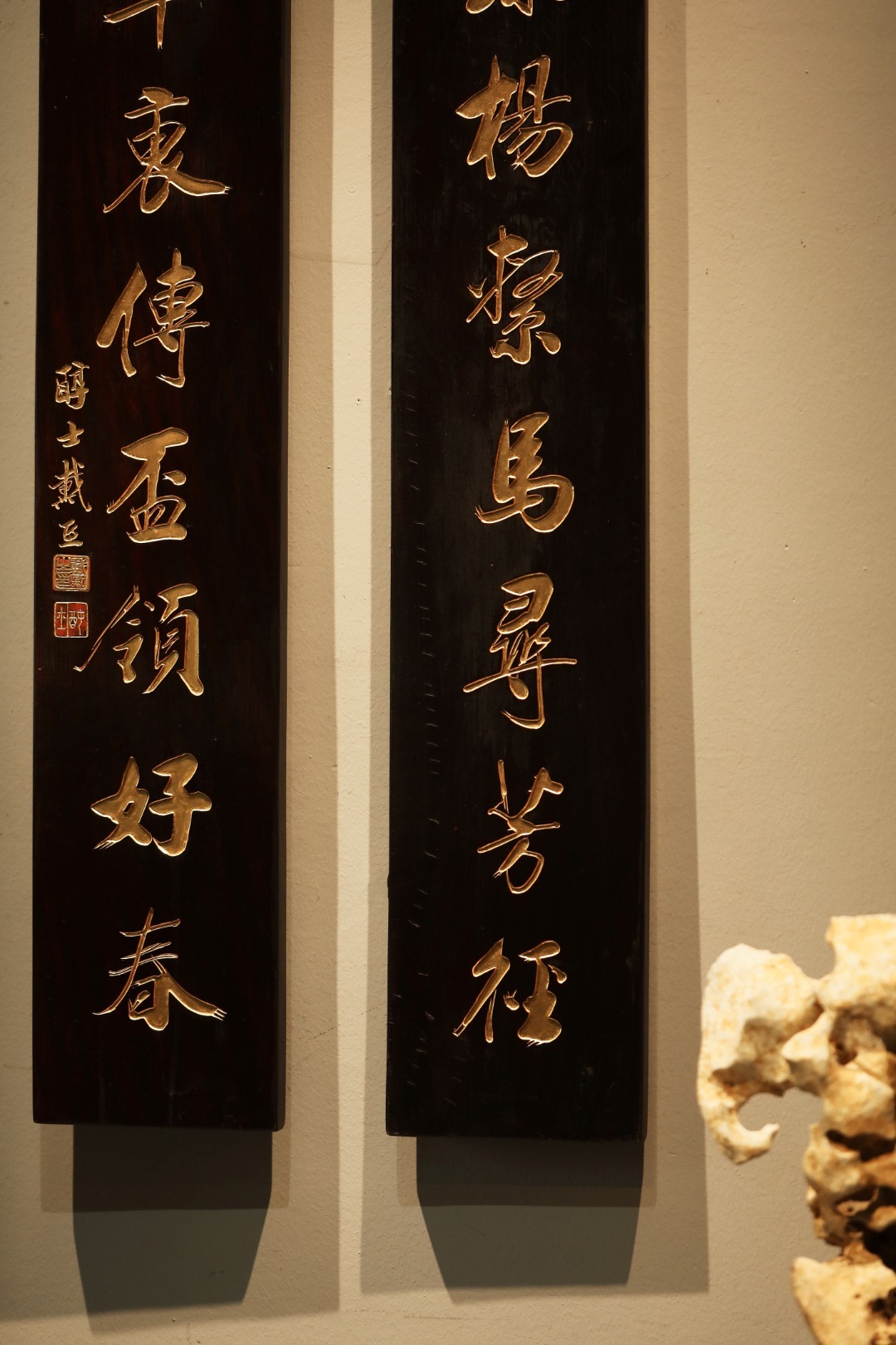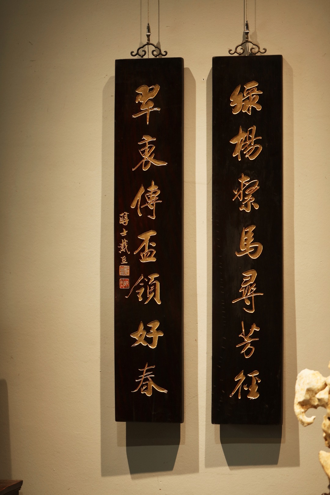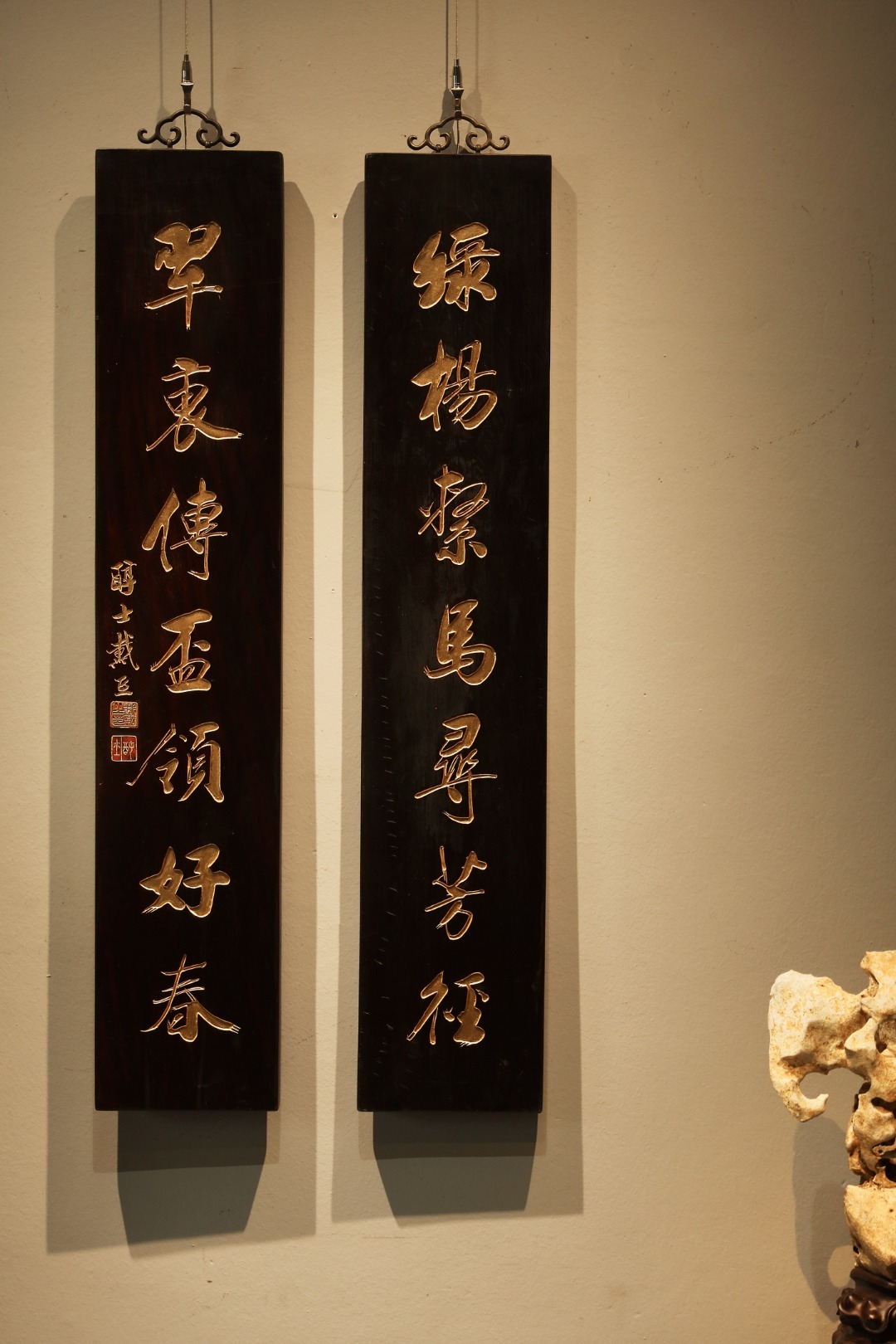 108.5*20.5*2.5cm 重17.1斤 老物件 | 七言对联