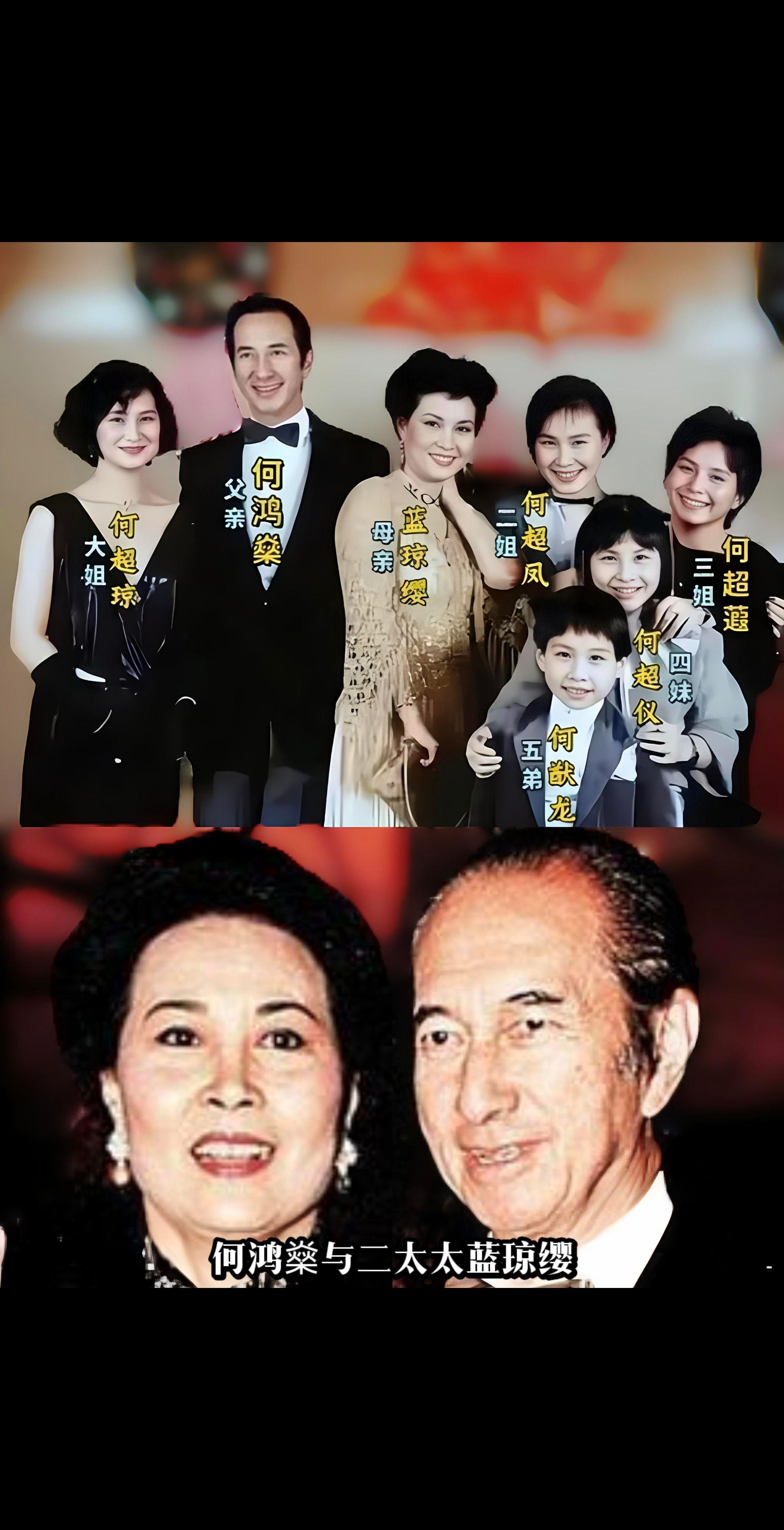 何超蕸去世,终身未婚,一生献给家族事业。何鸿燊与二太太蓝琼缨有5个孩子...