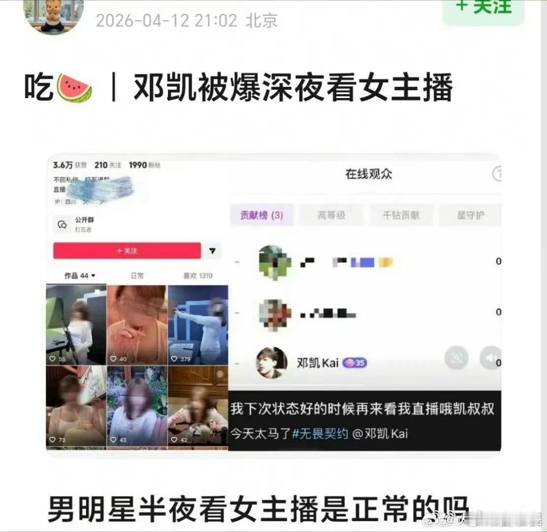 曝邓凯深夜看女主播到底是谁看邓凯火了,就要这么造谣他?人家看个游戏直播也要说深夜