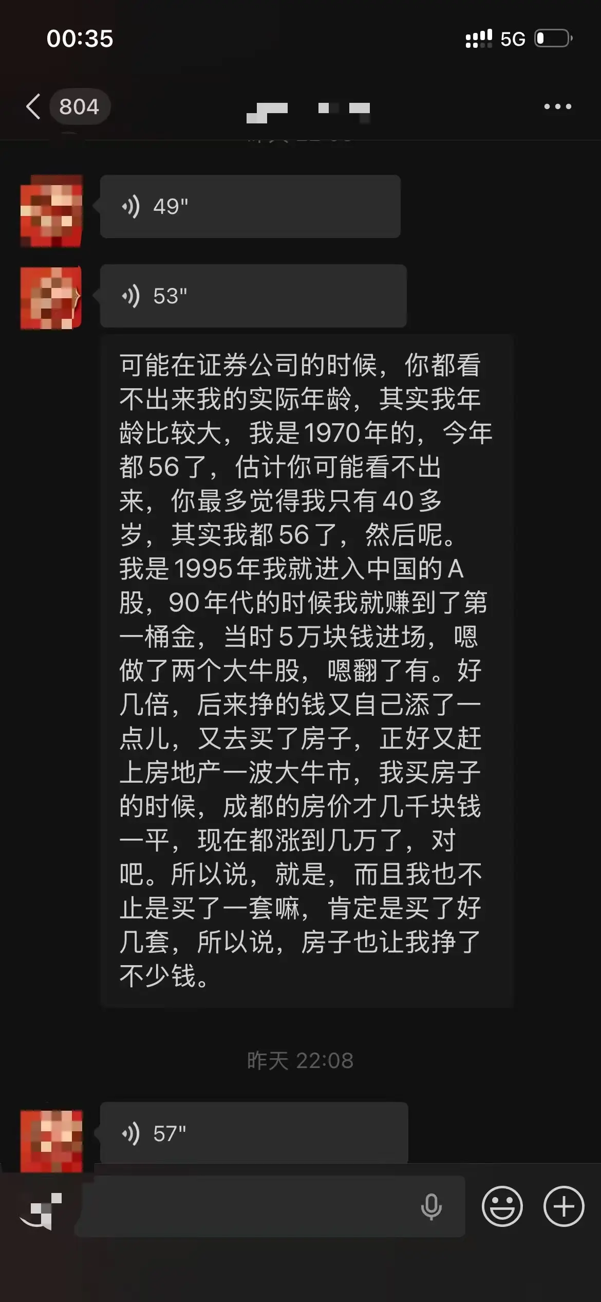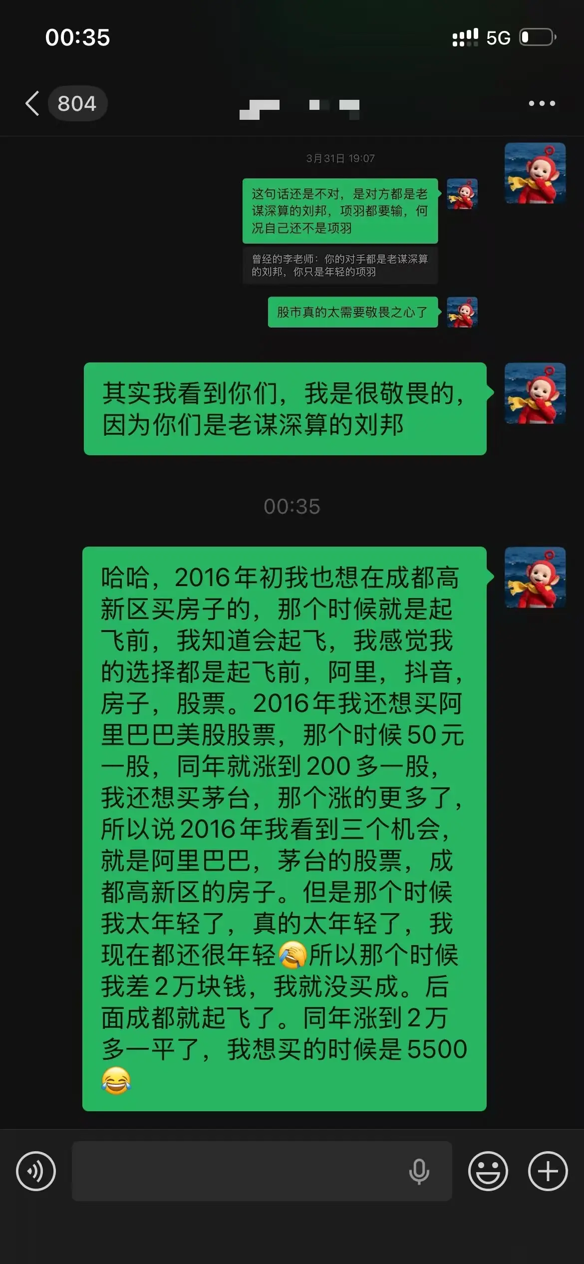 虽然我不知道结果会怎样。依旧还是这句话!其实每一分钱背后都有它的主人,钱财不会消失,但是会转移。别人带着30年的经验,并且全职炒股。你一个新人不肯付出时间研究,不肯学习,你本金还少,你还想小鱼吃大鱼,怎么可能呢?你想把别人的💰转移到你的荷包,你要么用身体付出劳动去换取,要么用你的大脑智慧去换取。你要明白背后与你博弈的人,尊重对手,敬畏市场。对方是老谋深算的刘邦,项羽都要输,何况自己还不是项羽。无脑跟风猛冲必死。需要蛰伏,修炼。自己太年轻了,真的太年轻了,他们入市的时候我才出世,我不敢骄傲!我必须随时保持自醒。他们挺吃惊我这么年轻,胜率还100,问我以前做什么的,我说做了10多年阿里,他们说:阿里出来的人都是金刚。这也算为老东家挣了点脸。