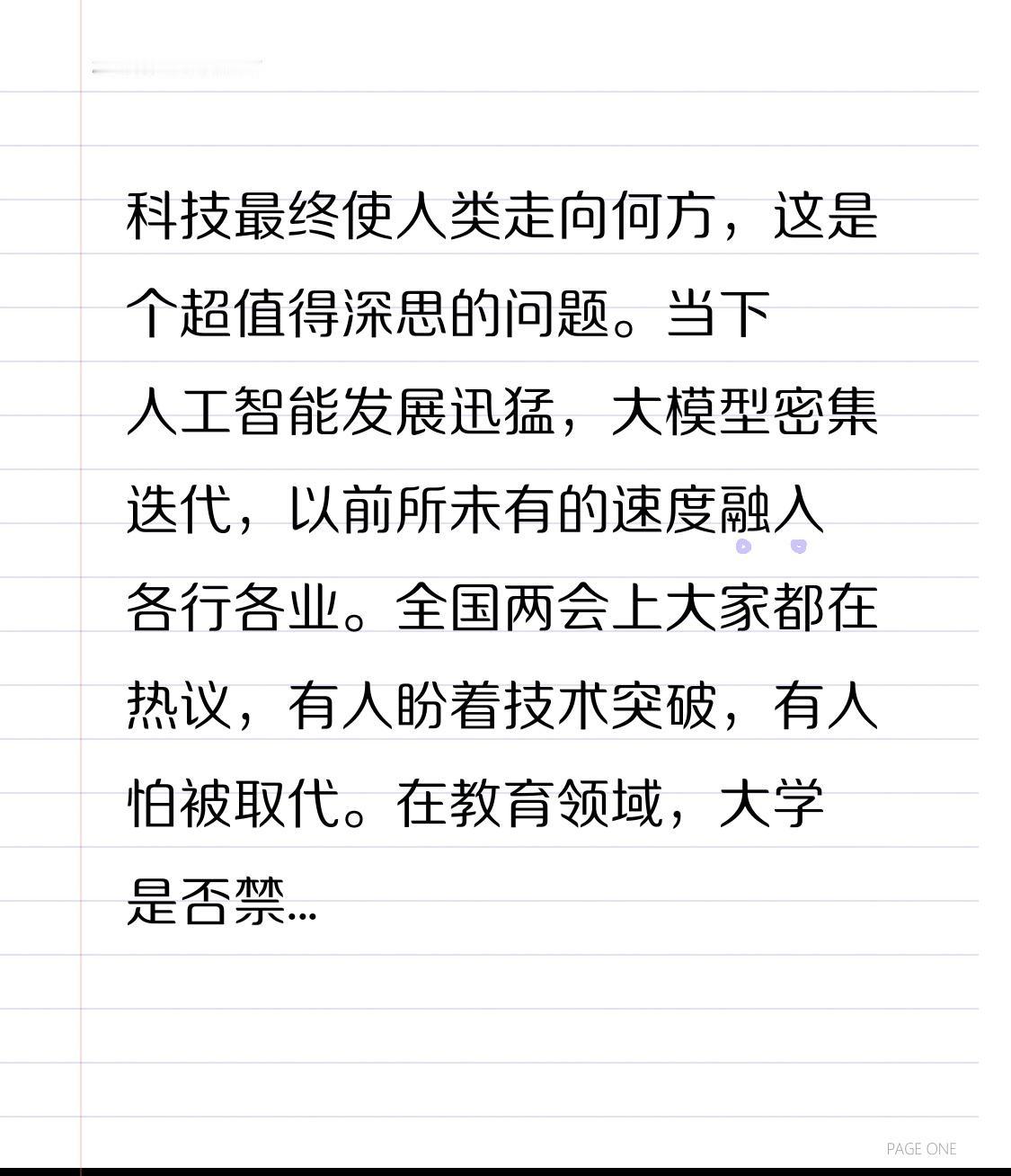科技最终使人类走向何方,这是个超值得深思的问题。当下人工智能发展迅猛,大模型密集迭代,以前所未有的速度融入各行各业。全国两会上大家都在热议,有人盼着技术突破,有人怕被取代。