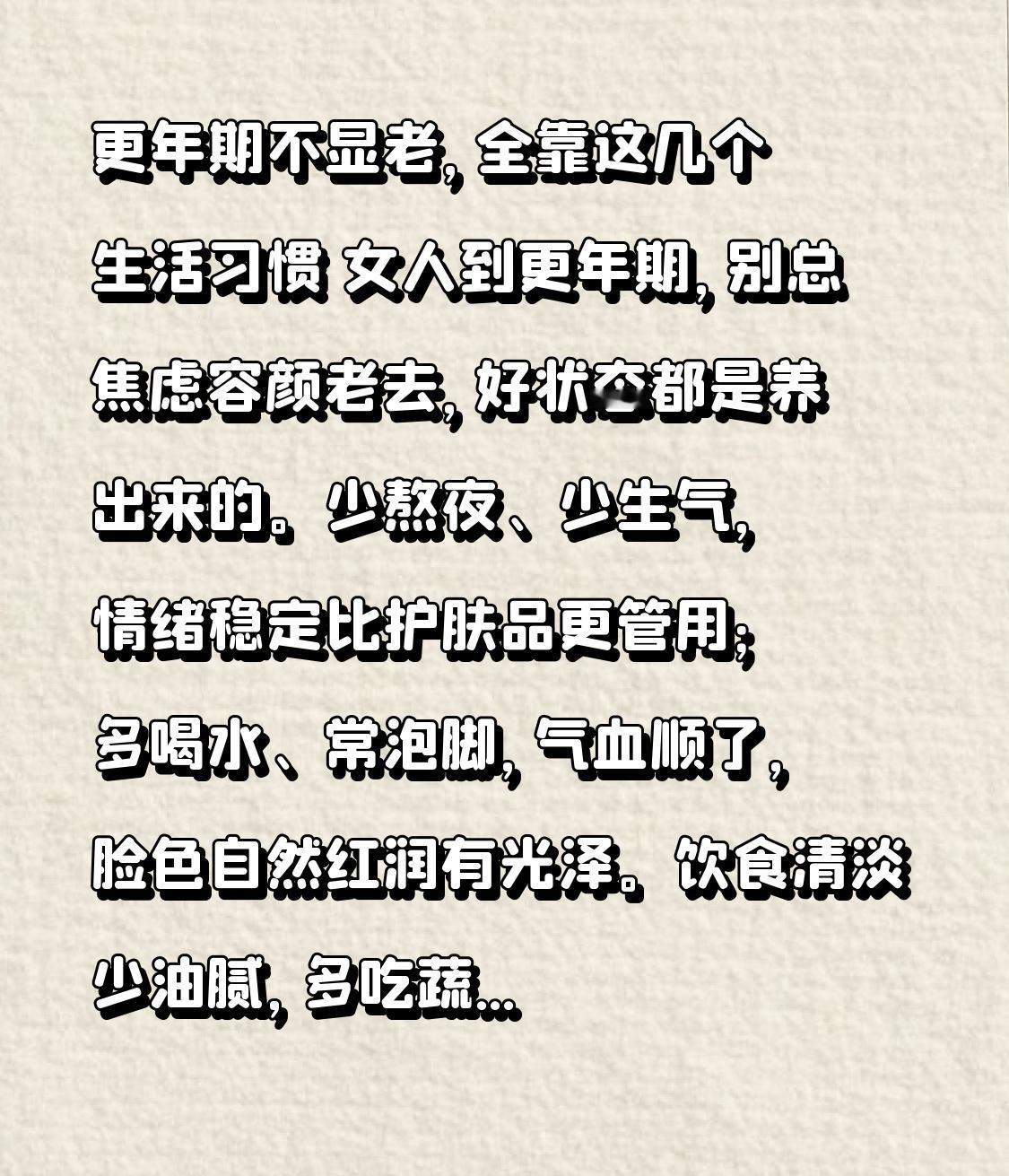不攀比、不内耗,好好睡觉、好好吃饭、好好爱自己,更年期也能优雅从容,越活越年轻。