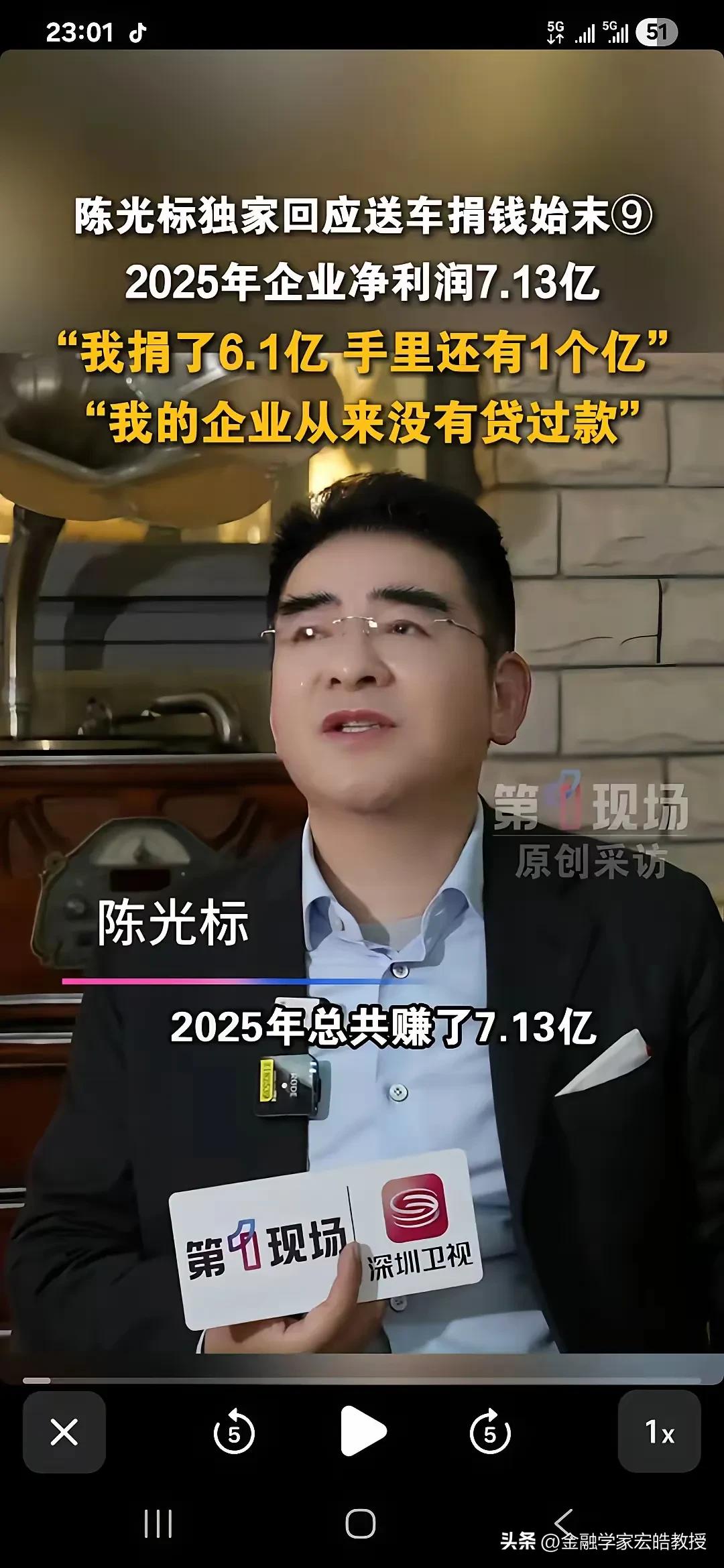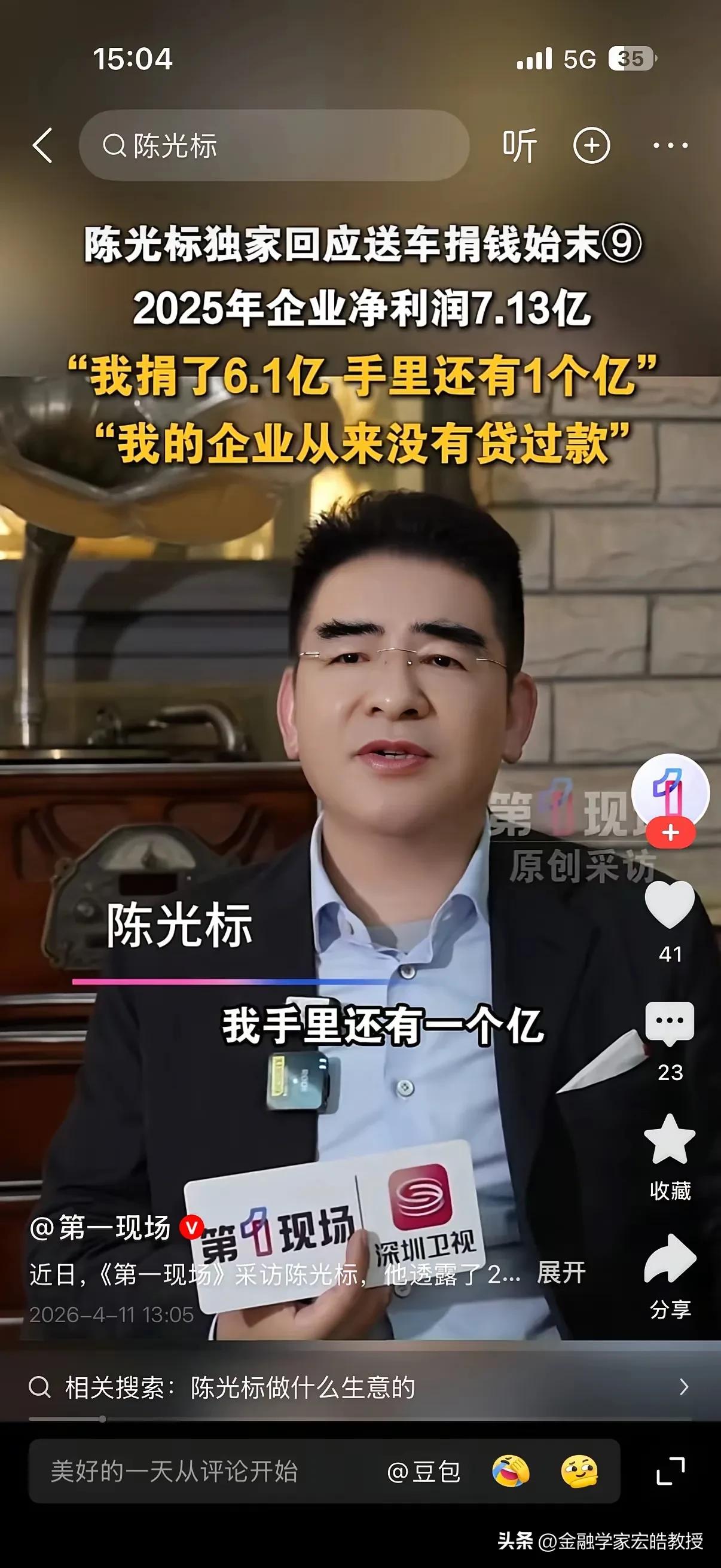 陈光标最新采访刷屏网络,他公开了 2025 年的核心财务数据:全年净利润 7.13 亿元,其中 6.1 亿元直接用于慈善捐赠,个人仅留存 1 亿元。