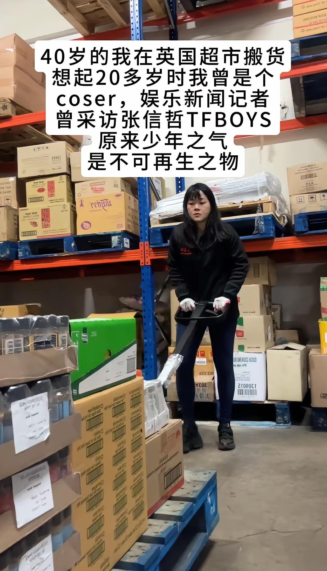 这个女人发视频说,她在香港时,曾经是一个主持人,一个coser,现在四十多岁了,在英国超市搬货。