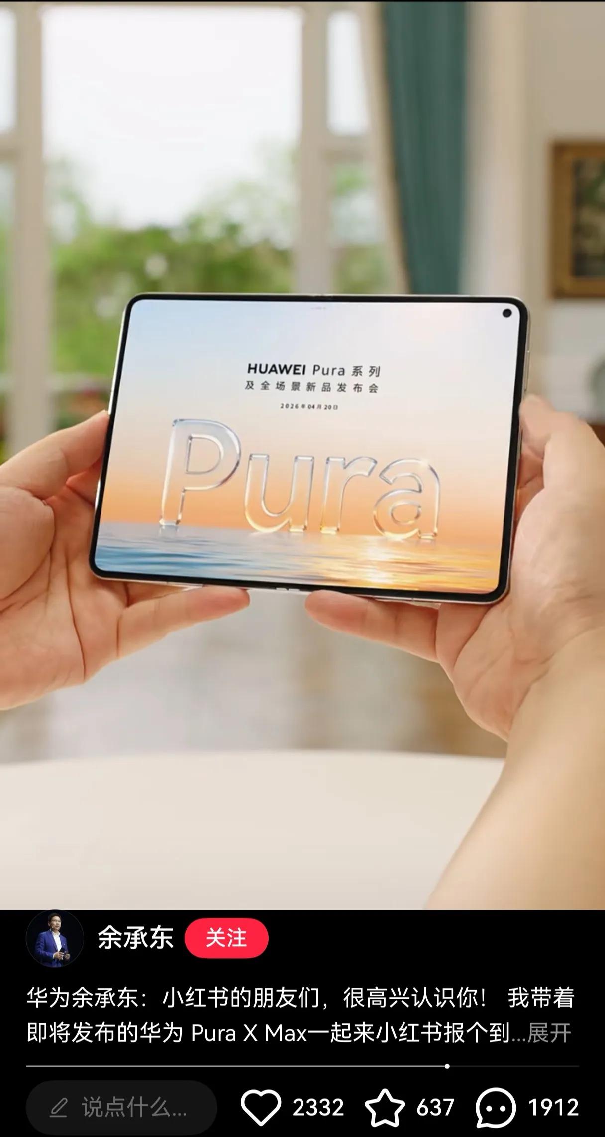 科技圈突发重磅!4月13日,余承东小红书首秀直接晒出华为Pura X Max真机,行业首款大尺寸横向阔折叠屏正式亮相,4月20日与Pura 90系列同台发布!