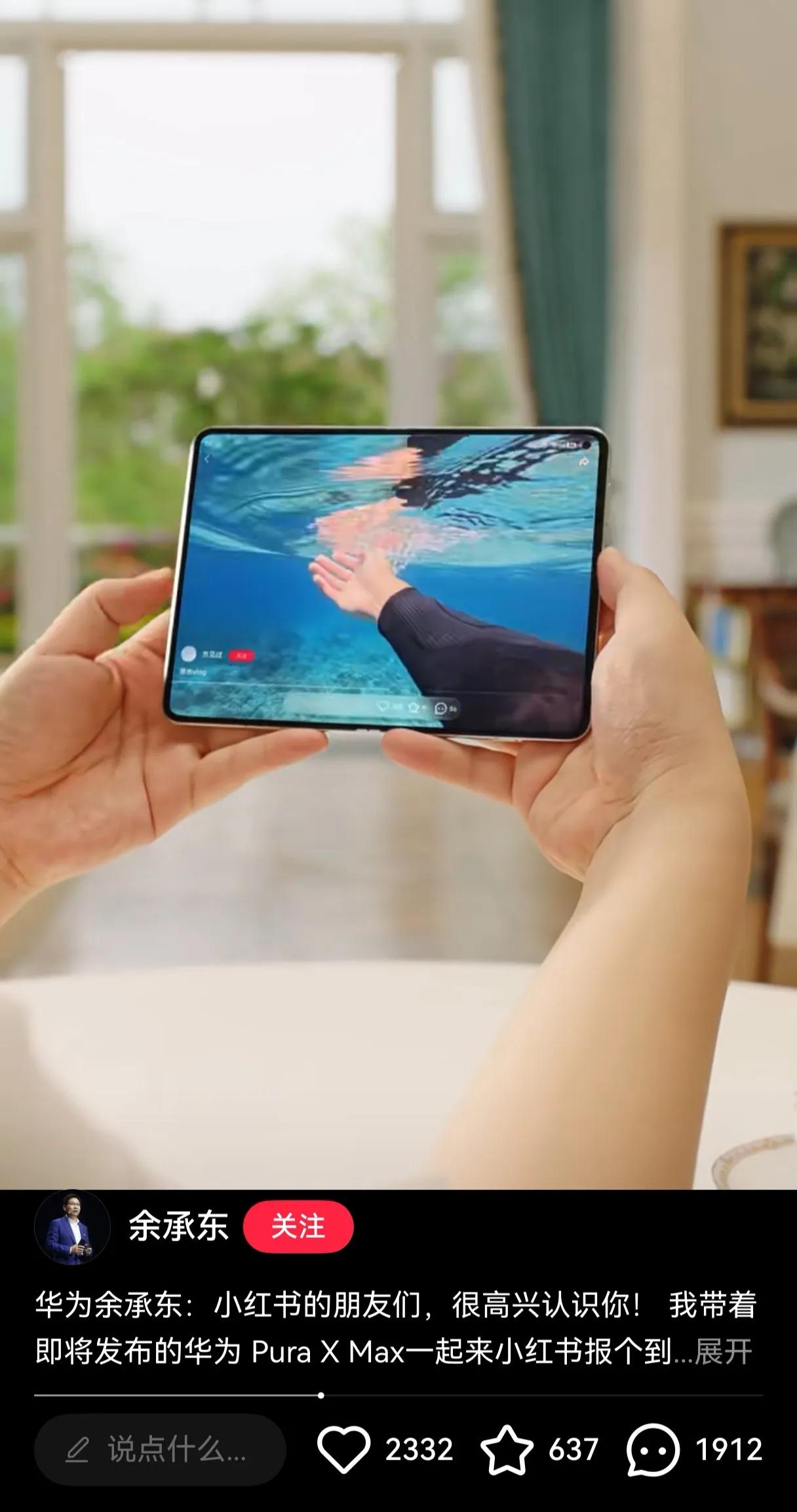 余承东首曝华为阔折叠Pura X Max真机余承东