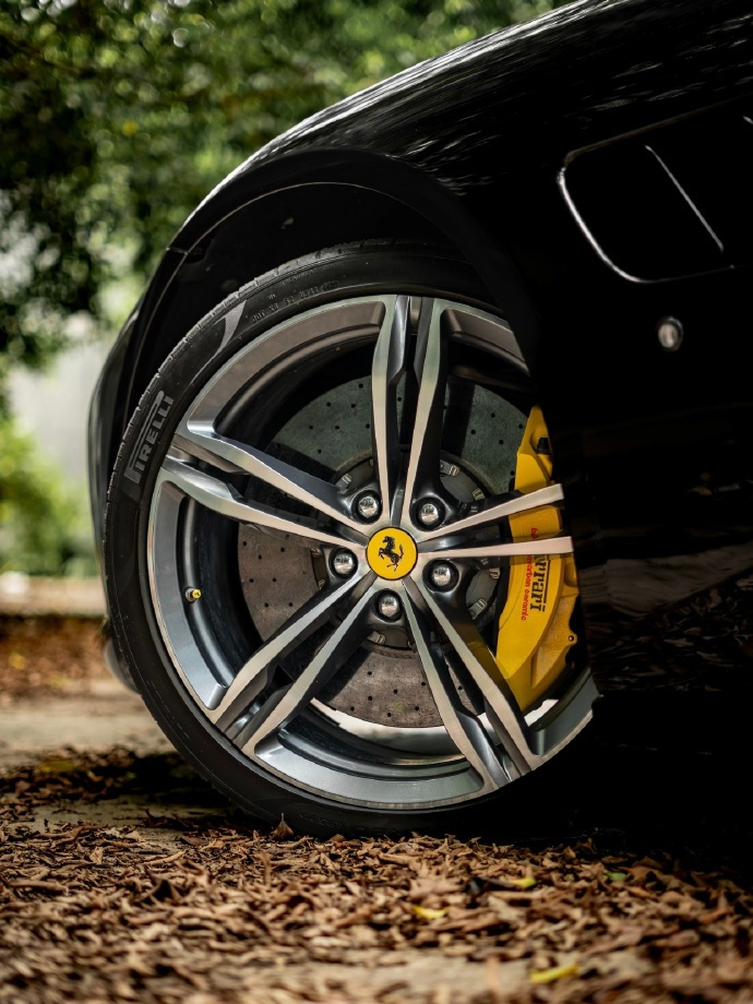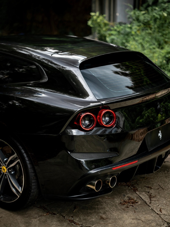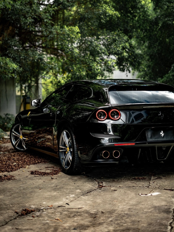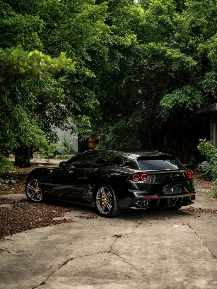 树影摇曳,洒下一片片斑驳陆离的光影。午后的阳光宛如细碎的金子,零零散散地洒落下来。就在这光影交织之处,一匹黑色的 “骏马” 悄然潜伏着 —— 它便是 Ferrari GTC4Lusso V12。汽车视觉