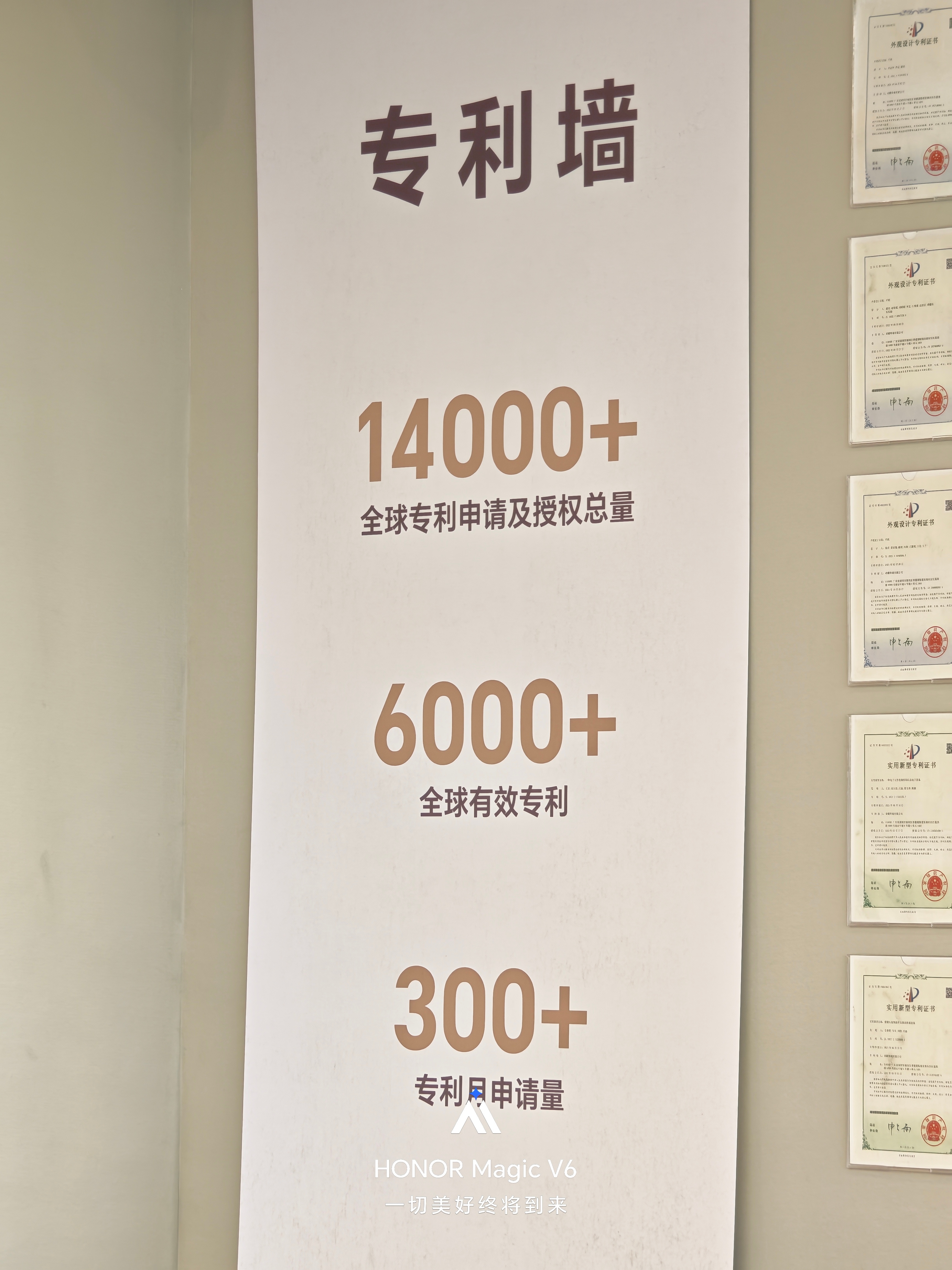 荣耀这专利墙,展示了荣耀独立几年来所获得的成就,全球专利用量已经破14000+,