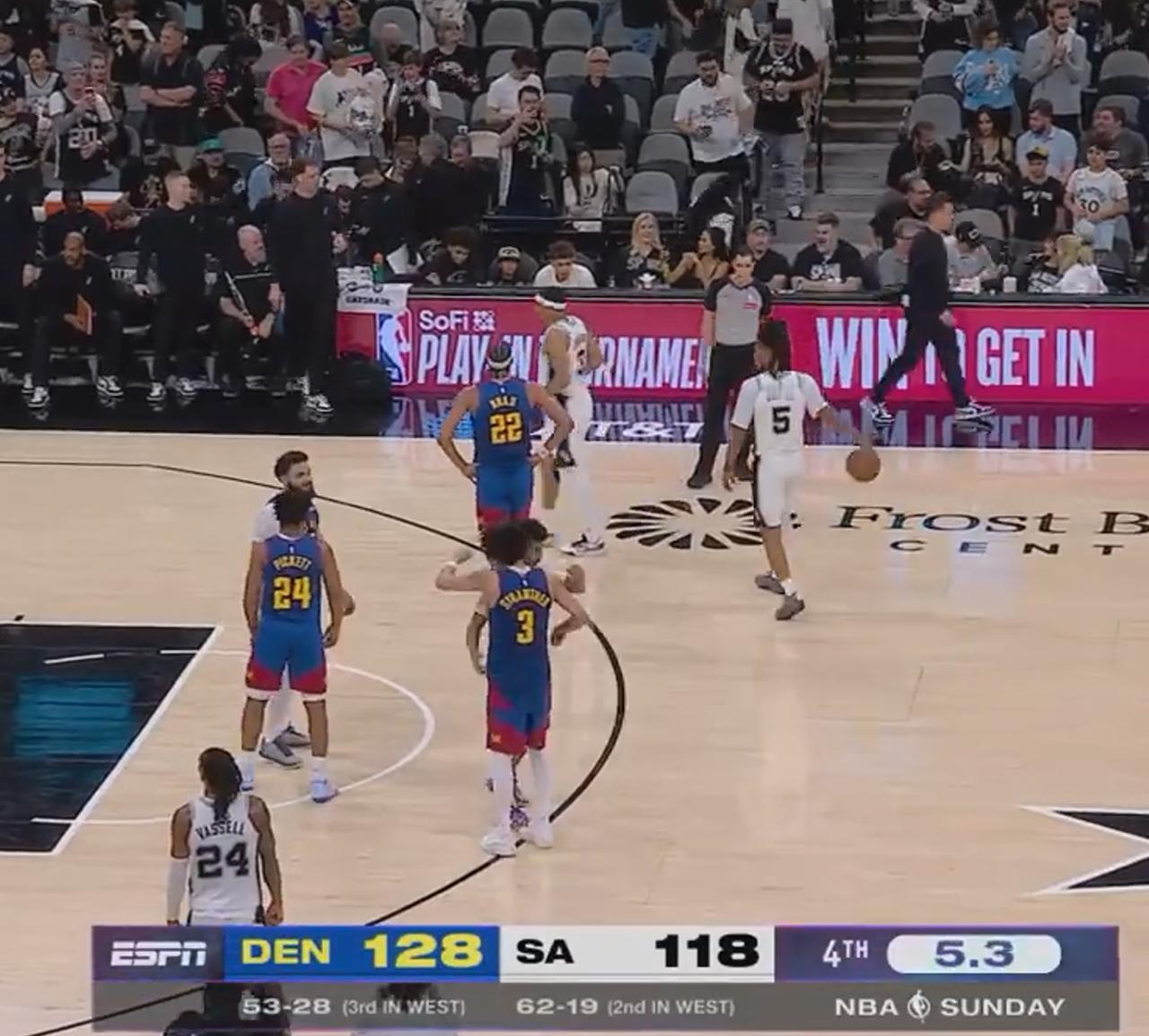 要不是约老师为了满足65场的评奖规定,今天估计也不会上场,反观马刺除了文班之外几乎是全主力出战,马刺确实想赢、结果没打过……