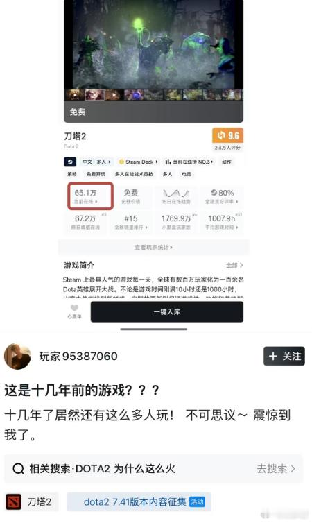 看到小黑盒的用户感慨这十几年前的游戏还这么多人玩,关键是V社还一直被骂,感觉要是多下点功夫,比如多搞点小本子,多来点什么今日首胜之类的活动,玩家人数可以再增加个50%不成问题,DOTA2的可玩性是杠杠的dota2dota