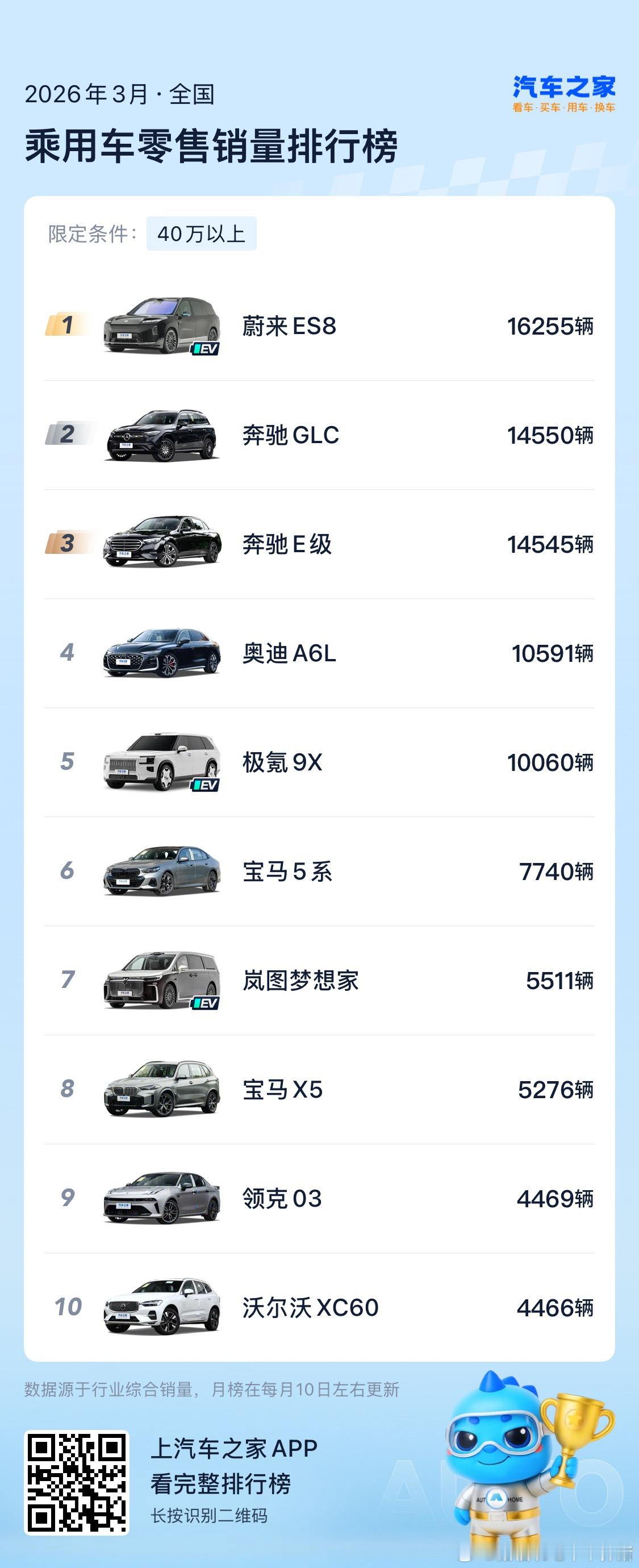 从去年年10月上市,到今年3月的六个完整交付月里,全新ES8累计零售销量84,810辆,在大型SUV级别和40万元以上两个细分市场均排名第一。