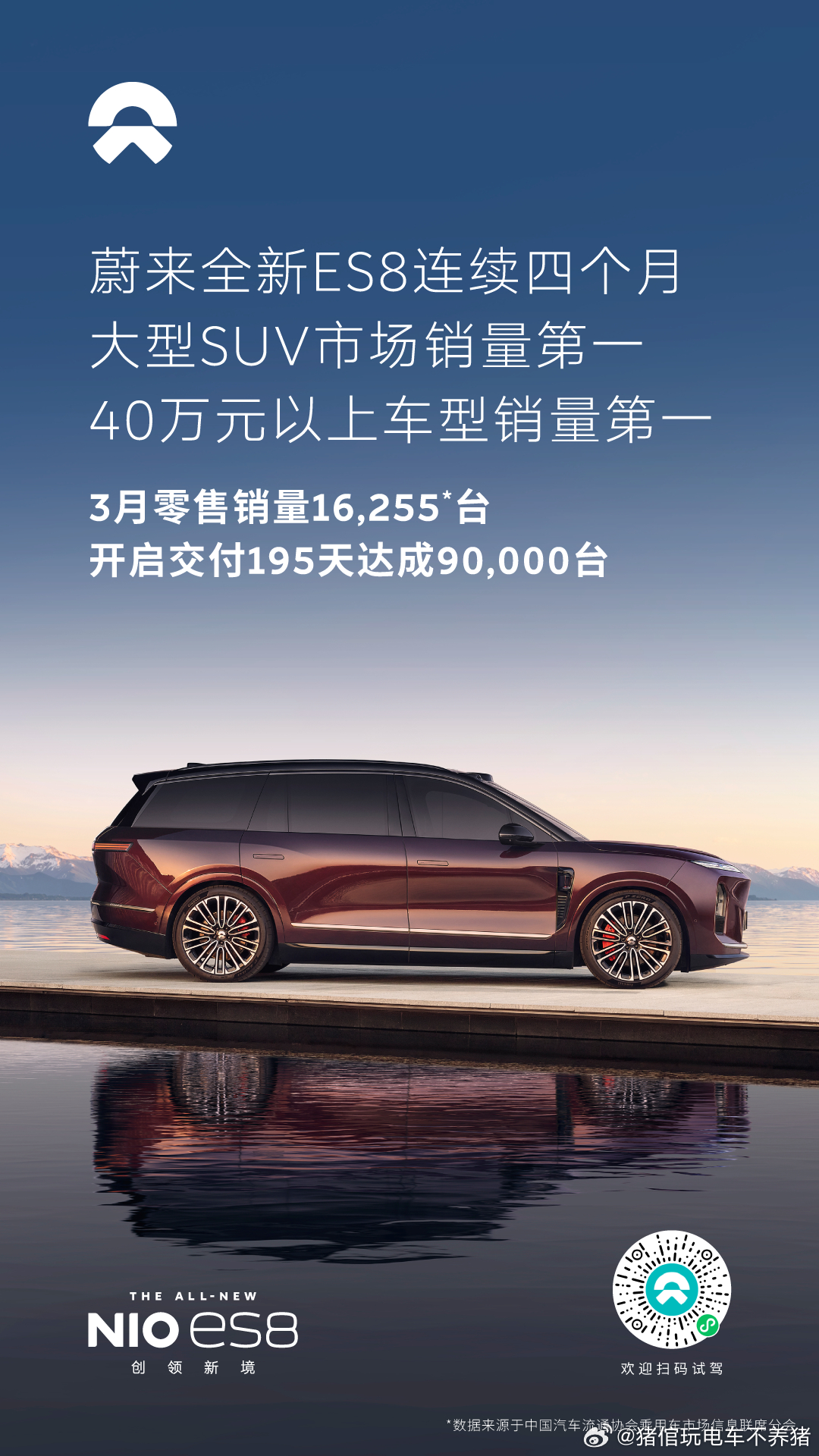 蔚来全新ES8,连续四个月斩获大型SUV和40万元以上车型销量冠军。