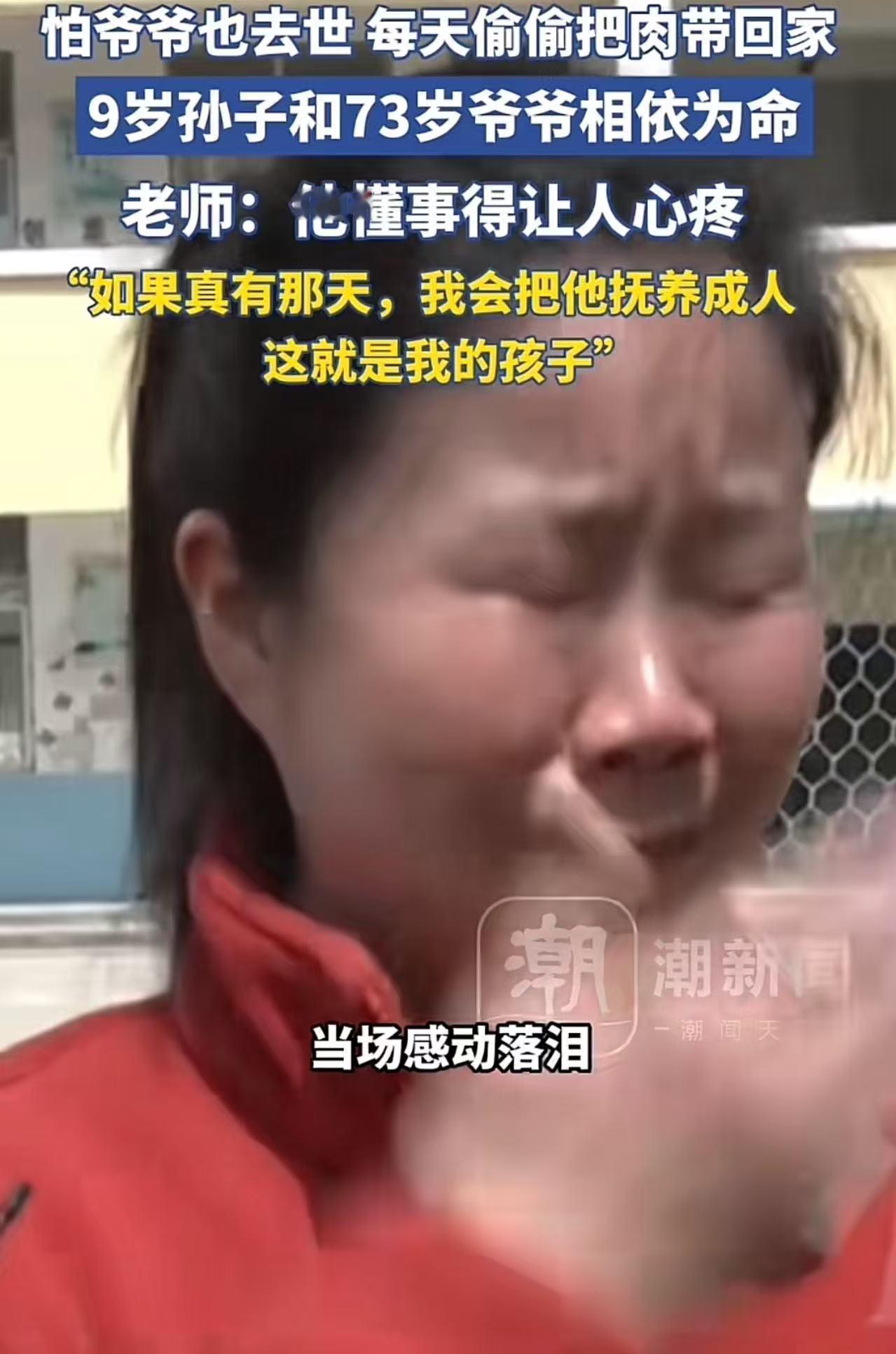 老师握住老人的手,声音哽咽:“没有,他很懂事!爷爷,您别担心。如果真有那天,您放心,这个孩子就是我的孩子,我会把他抚养成人。”