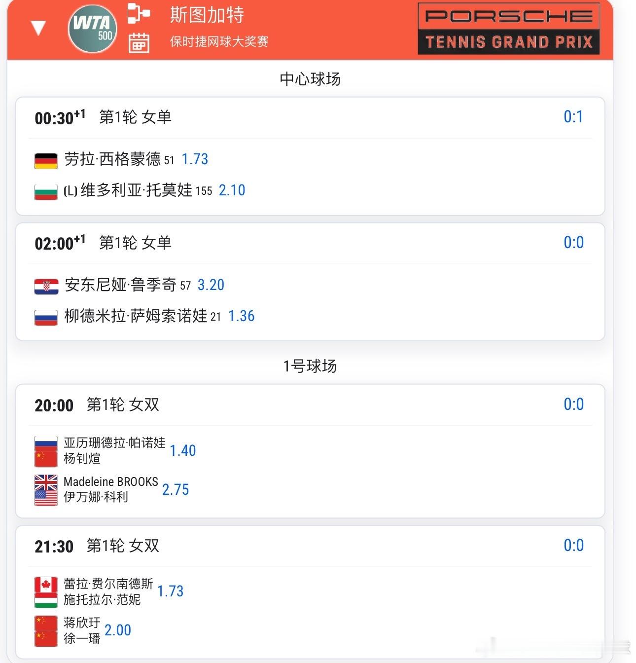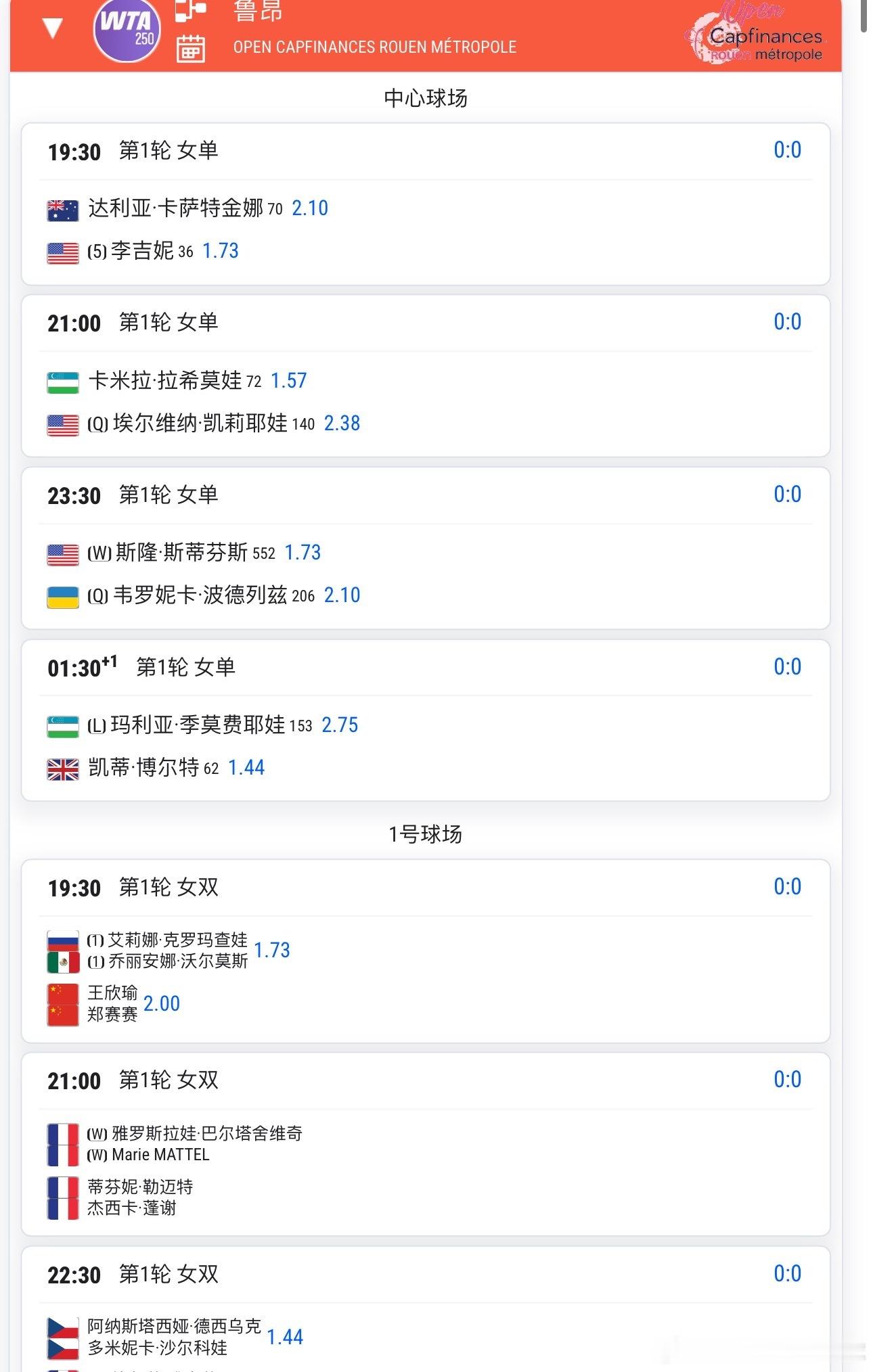 今日赛程 各种比赛首轮王欣瑜,张帅单打明天,今天只有王欣瑜/郑赛赛双打wta