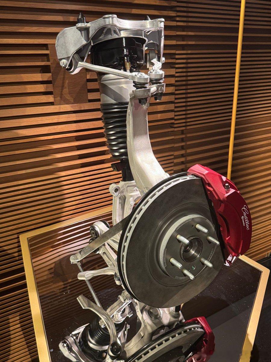 3. 对通用北美原厂调教的电动豪华全尺寸SUV的期待。现场最亮眼的除了十八横十纵-一身“反骨”的车身结构外,最扎眼的就是巨大的空悬和Brembo红色大卡钳。