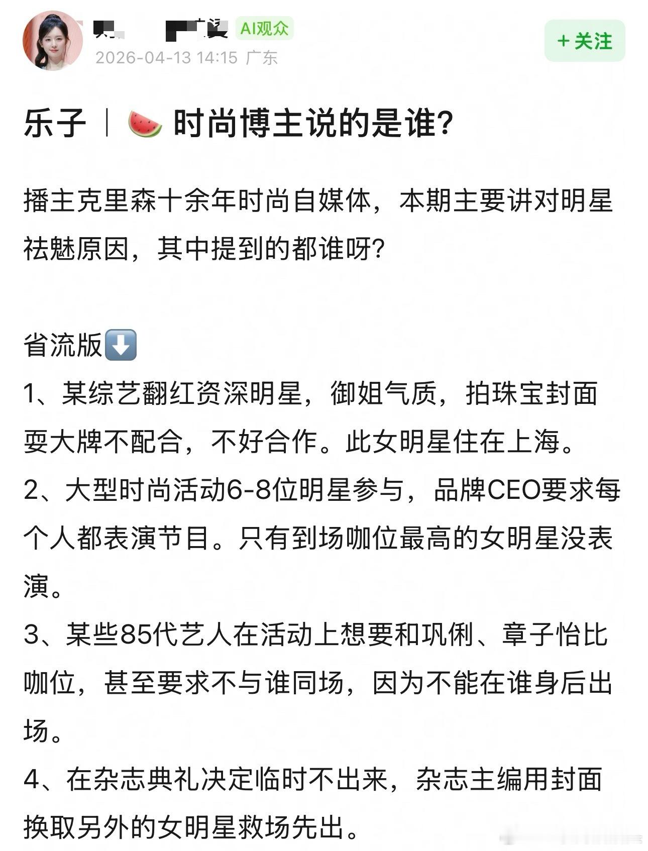 时尚博主克里森谈对明星祛魅的原因p1省流版👇🏻