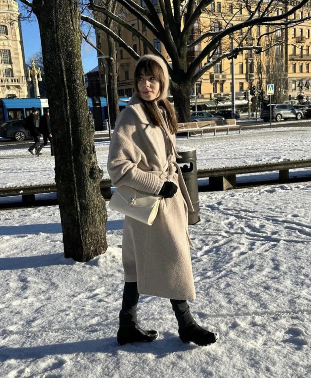 SENTALER 星光剪影|莉莉·柯林斯 美國女演员莉莉·柯林斯(Lily Collins)身穿 SENTALER 米色 Bouclé 羊驼毛平驳领宽松大衣现身她的瑞典旅行。 SENTALER 加拿大奢华品牌