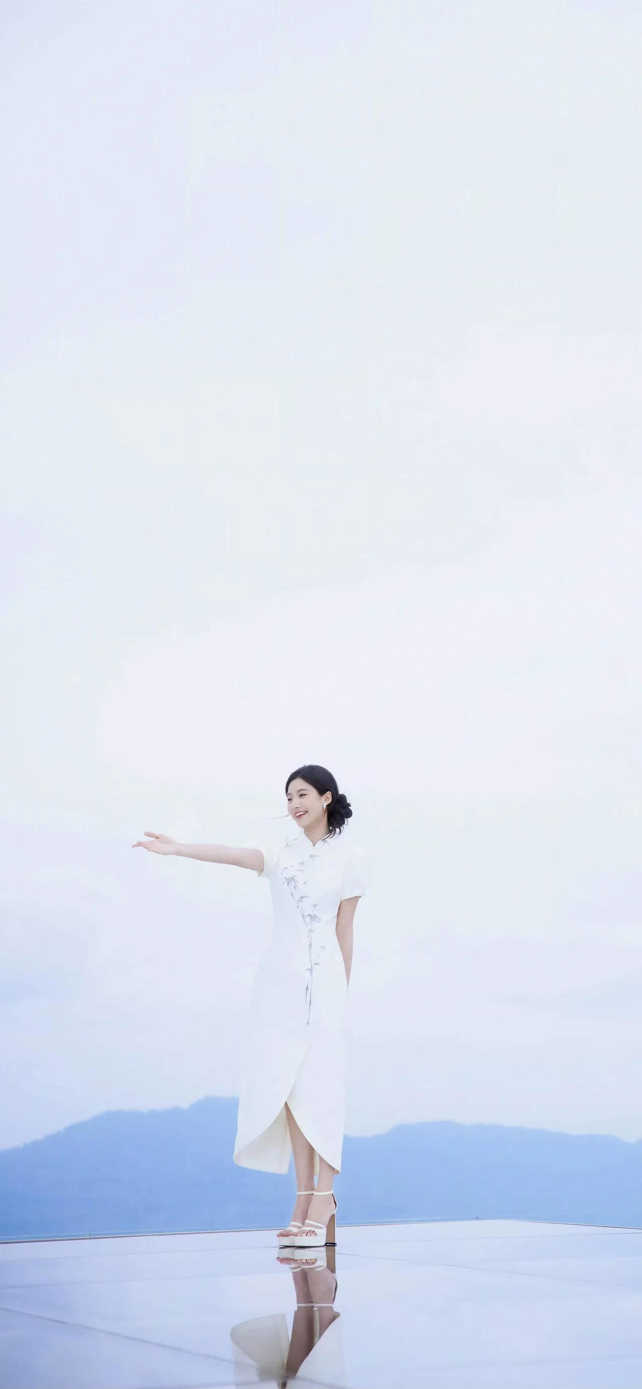美女壁纸~卢昱晓,一袭月白旗袍,立领温婉,竹影纹样清雅如画。盘发优雅,笑靥温柔,将君子如竹的风骨与女性的柔美完美相融,每一帧都是岁月静好的国风诗意